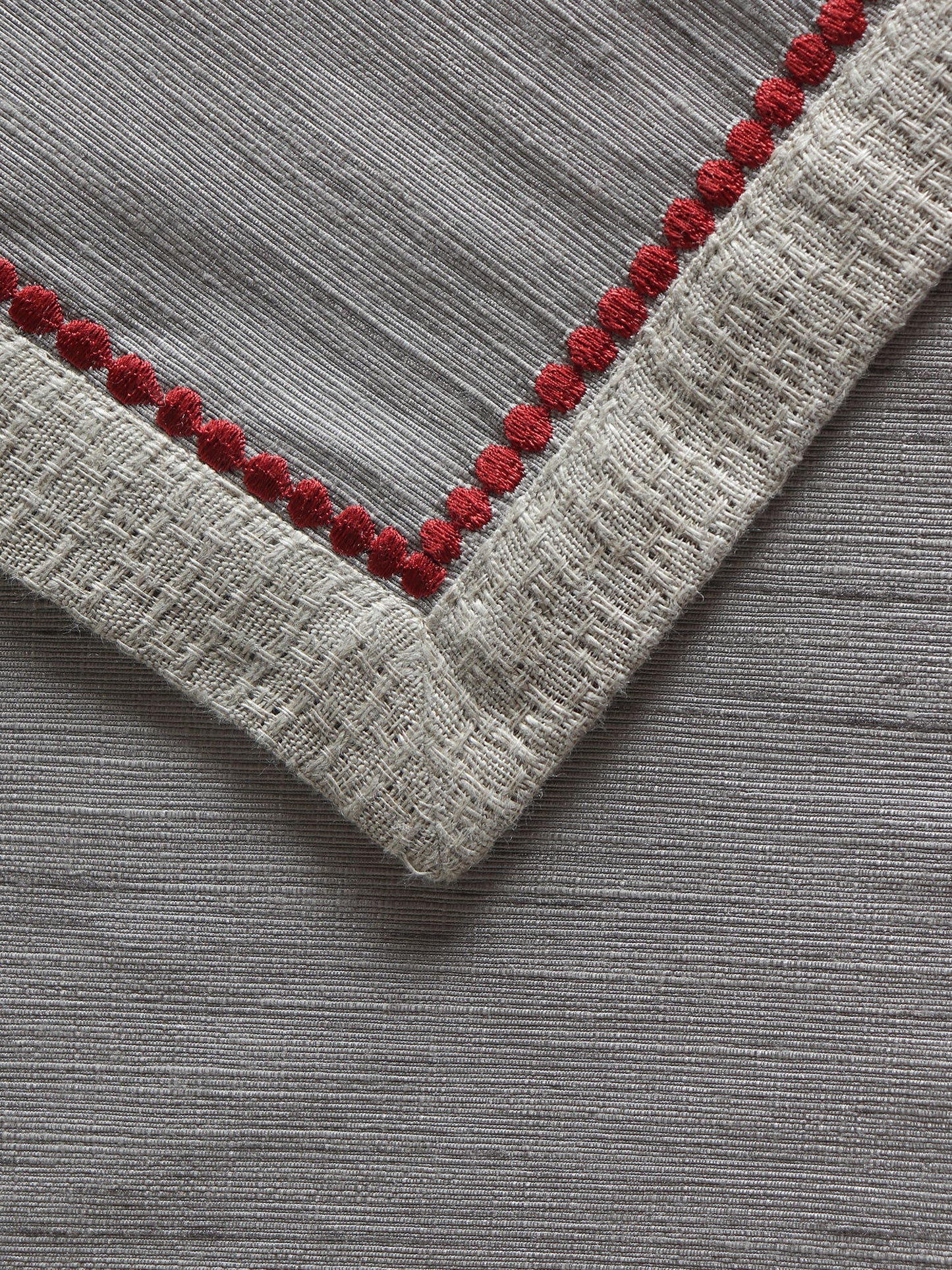 This captivating red dotted embroidery table runner from Zeba seamlessly blends contemporary style with a touch of texture, adding instant elegance to your dining space.