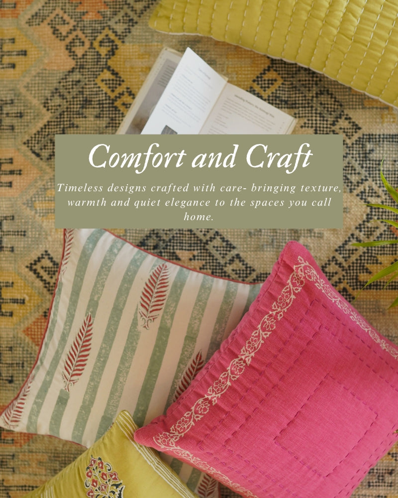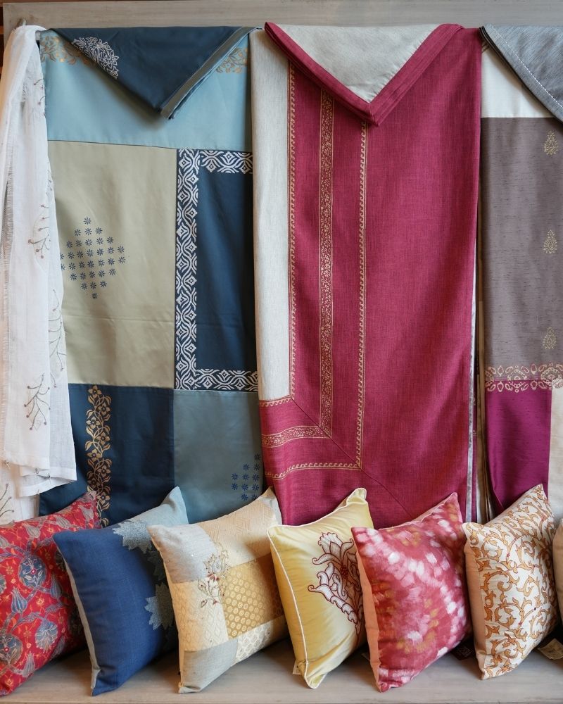 Designed by Zeba, this stunning room showcases coastal charm through a soothing palette of ocean blues, soft greys, and bright whites. Our cushions in bold patterns and velvets add vibrancy to the interiors, paired with runners and modern furniture that complement the style.