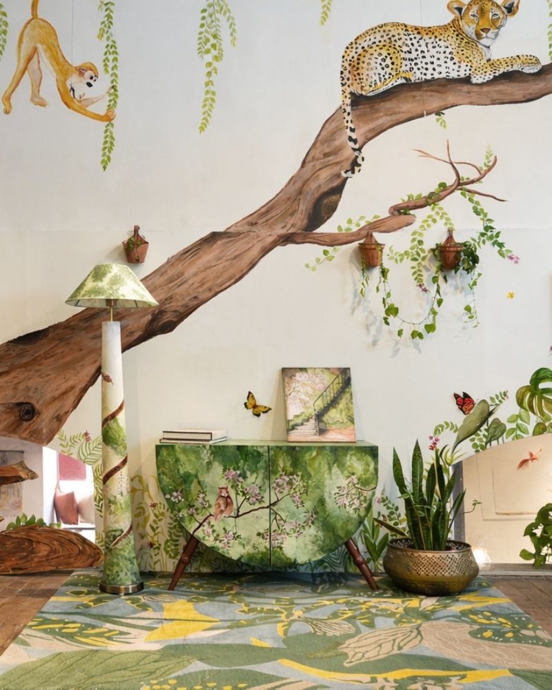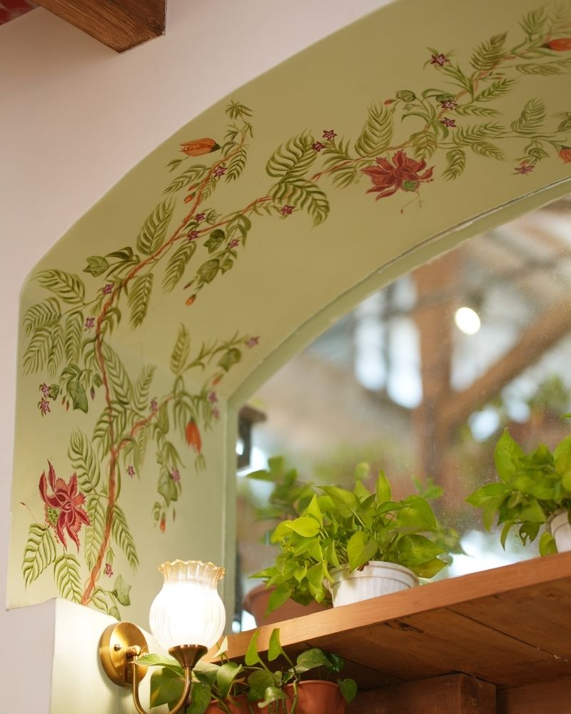 Designed by Zeba, this cozy home in Mumbai brings together soft textures and vibrant charm. The space features custom-made floral wallpapers, embroidered chairs that are brought in to coordinate the entire look. Each space is designed in a way that speaks your personality.