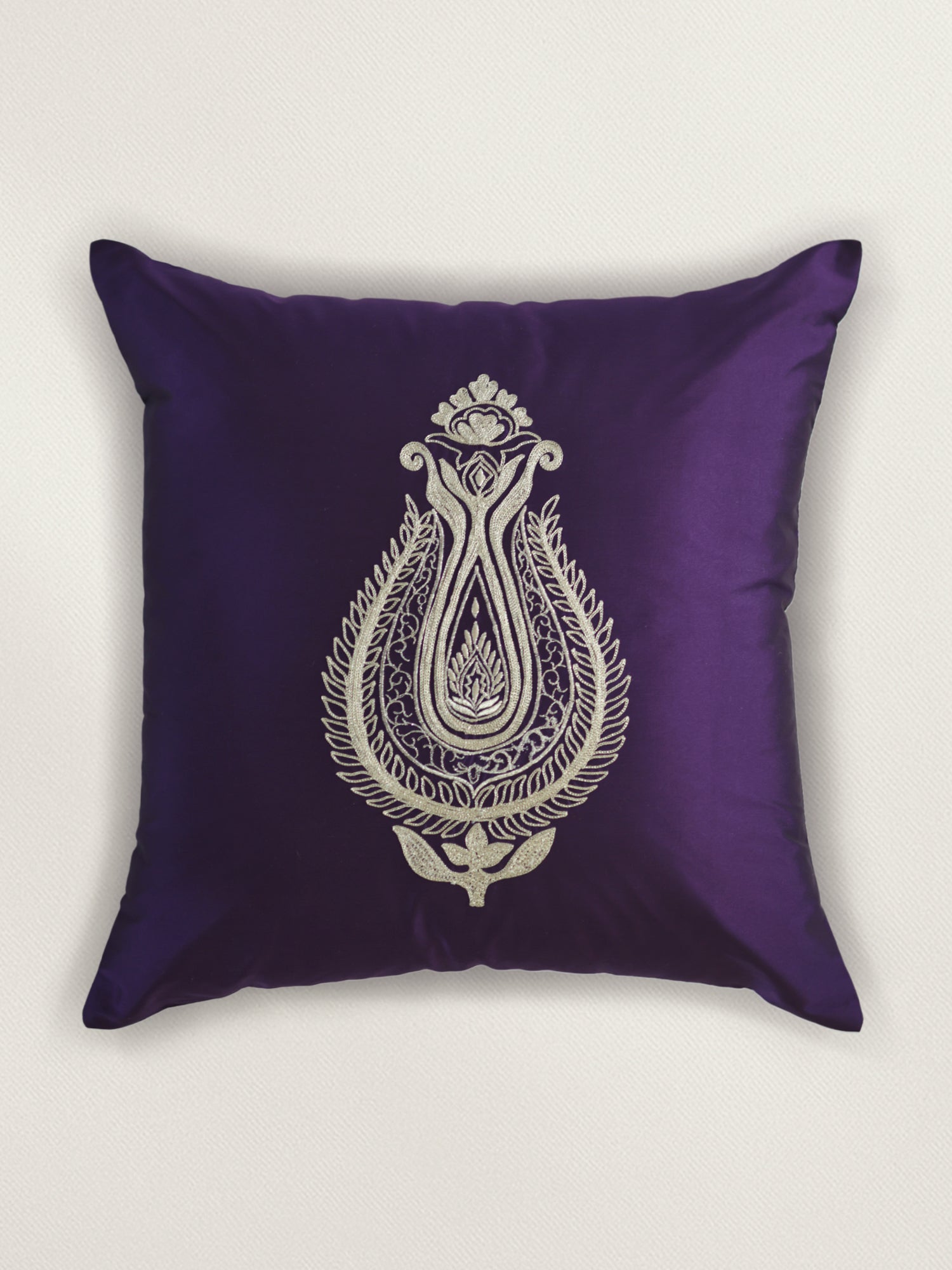 Aari Embroidered 100% Polyester Cushion Cover | 16x16inch | Purple
