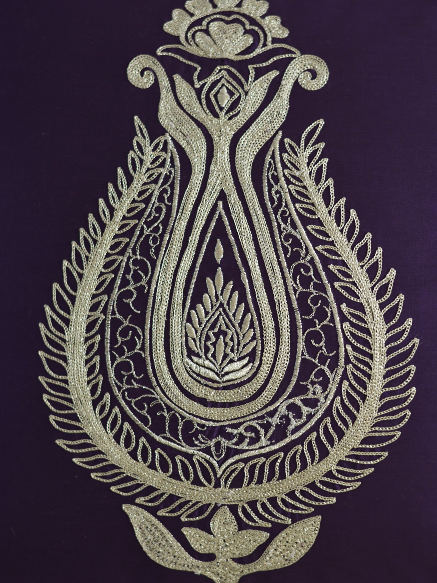 This beautifully crafted Embroidered Cushion Cover features a combination of Aari and machine embroidery, the design showcases floral and paisley elements in shimmering gold thread that contrasts beautifully against the rich purple color. The cover feels luxurious and eye-catching centerpiece for your sofa or bed. The cushion cover measures 16x16 inches, set of 1 and is made from 100% soft polyester that ensures comfort and durability. A zip closure at the back ensures easy insert and removal. Perfect for festive occasions or everyday decor.