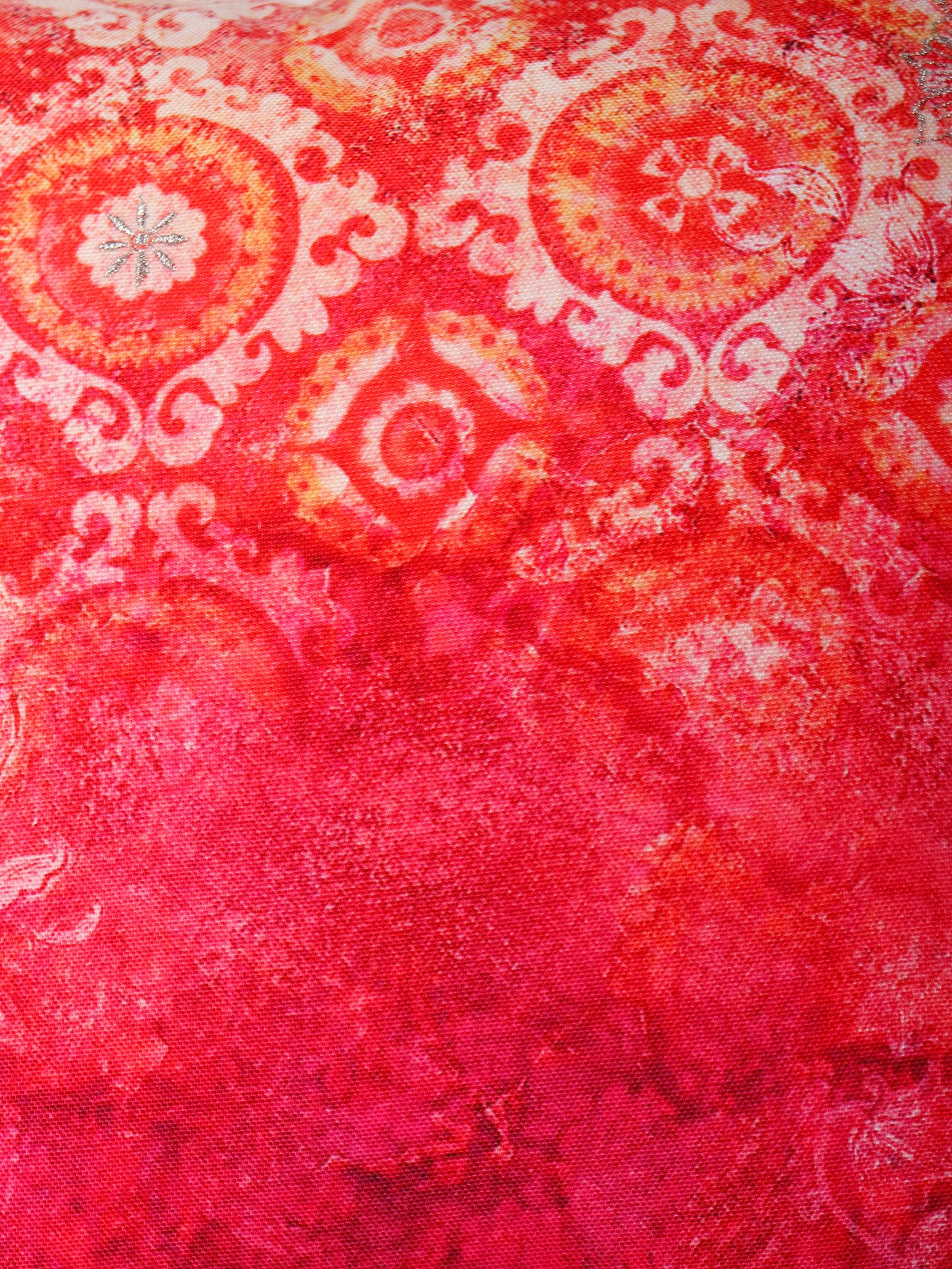 Abstract Printed with Zari Highlight Embroidered Cushion Cover - Pink - 16x16 Inches