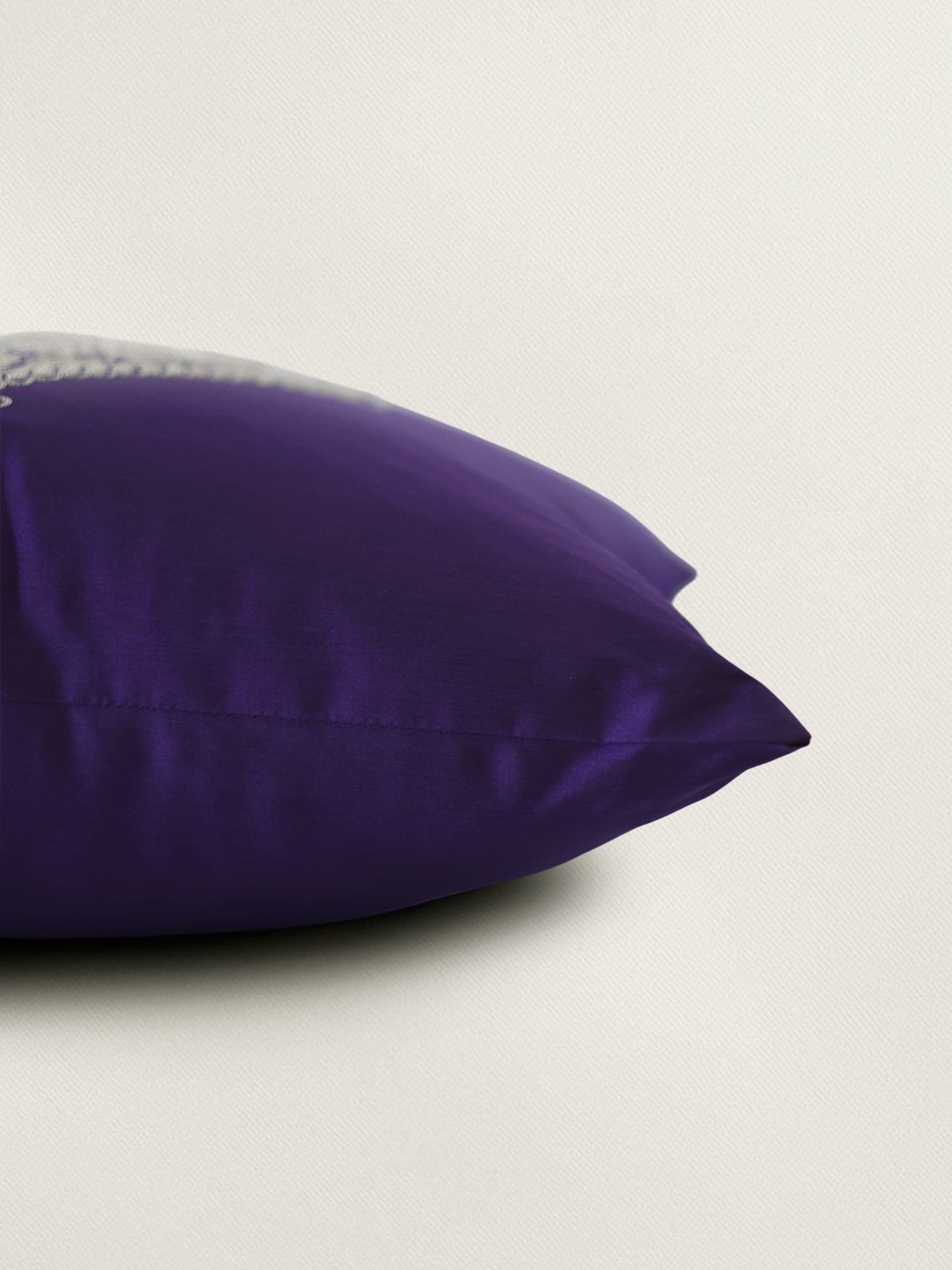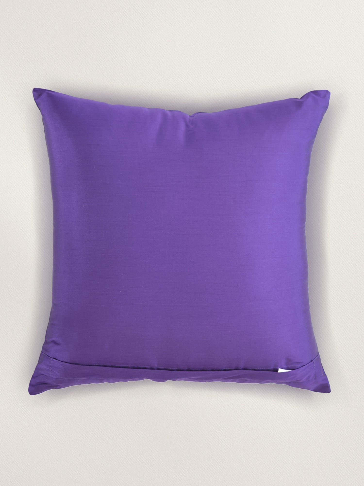 Elegant and Bold. This Purple Cushion Cover is embellished with a combination of Aari and machine embroidery. The central design features a traditional paisley element in striking cream threadwork, offering a beautiful contrast against the deep purple fabric. The rich tones and fine detailing make it a standout piece. The size of cushion cover is 16x16inch in set of 1 and is made from 100% soft yet durable polyester. The zip closure at the back ensures easy insert and removal. A perfect piece to elevate your space this festive season or everyday décor.