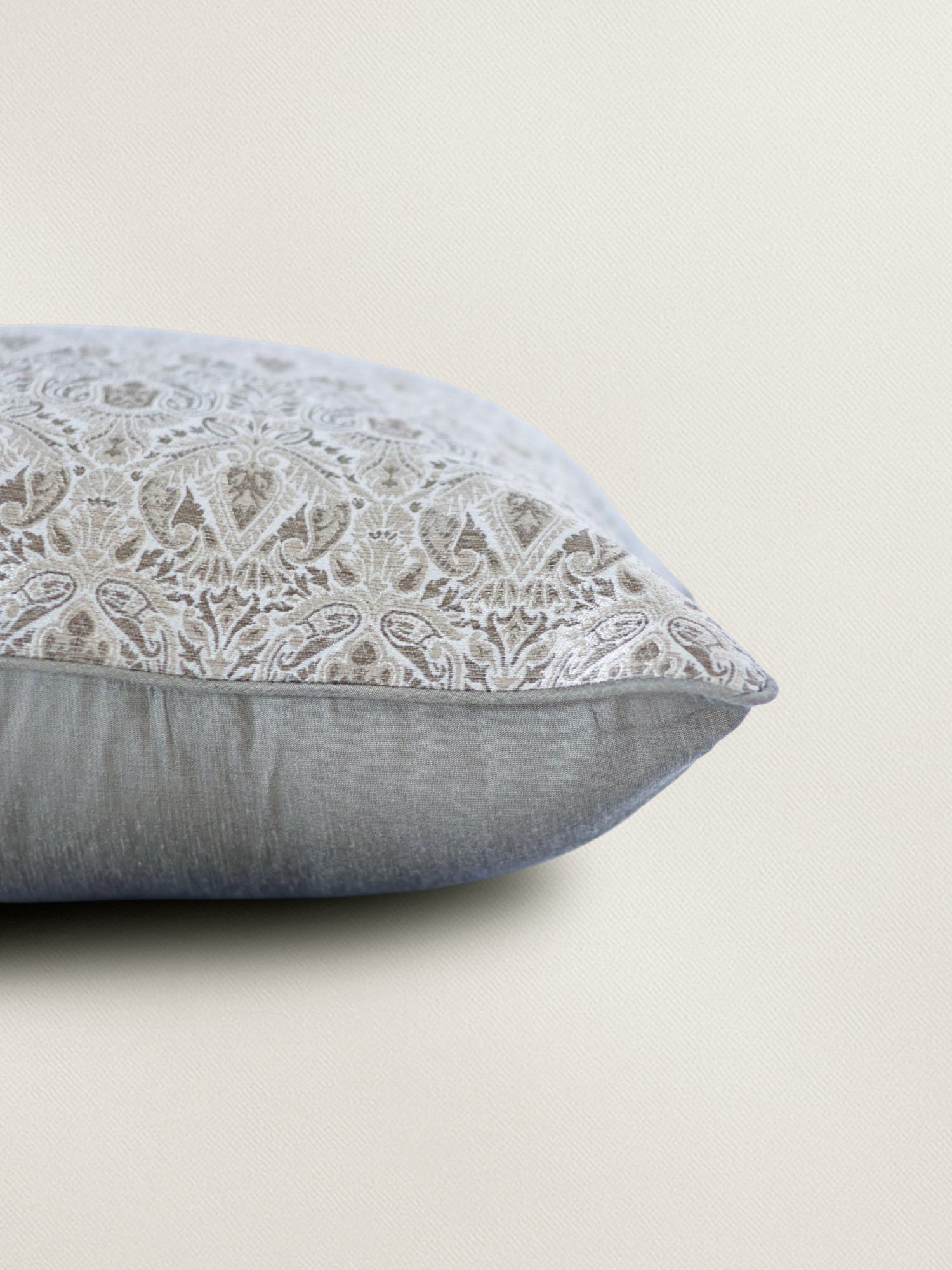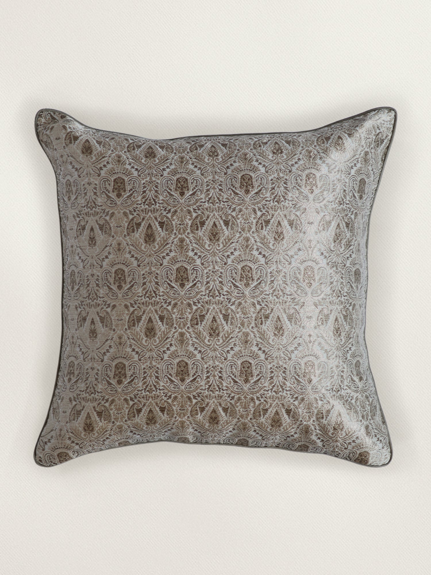 This cushion cover is crafted from brocade fabric, offering a beautiful interplay of texture and sheen that instantly elevates any decor setting. The intricate patterns of the brocade exude timeless elegance, while the addition of a cord piping around the edges adds a refined finishing touch and enhances the overall look of the cushion cover. The size of the cushion cover is 18 inches x 18 inches square cushion cover along with a zip closure at the back that ensures easy insertion and removal.