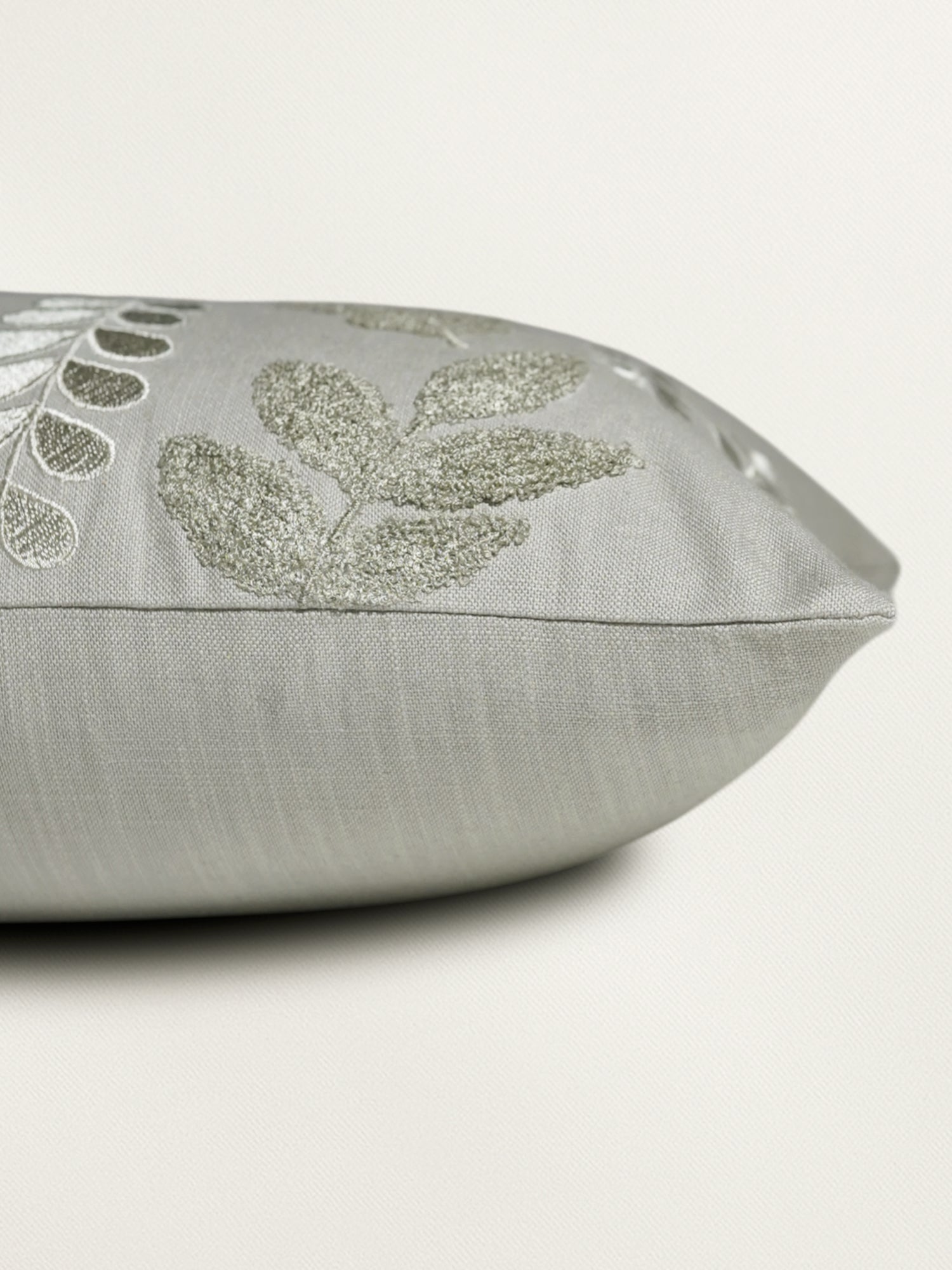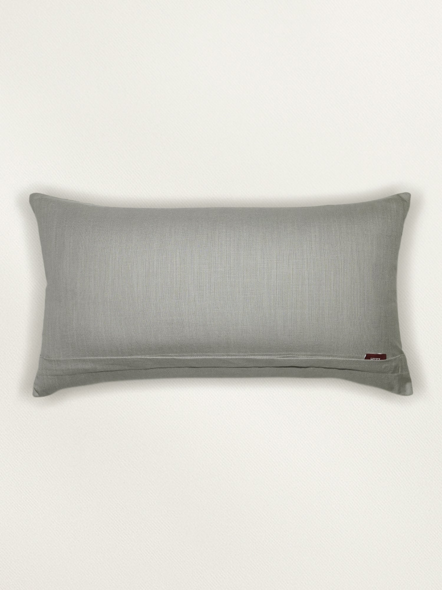 Add a touch of artisanal flair to your home with this elegant grey cushion cover. Crafted from a high-quality linen blend, it features Arri work embroidery, bringing a refined texture and cultural richness to your space. The 12x22 inch size makes it ideal for lumbar support or as a decorative accent on your bed or sofa. With its subtle grey tone and intricate detailing, this cushion cover blends modern minimalism with traditional charm.