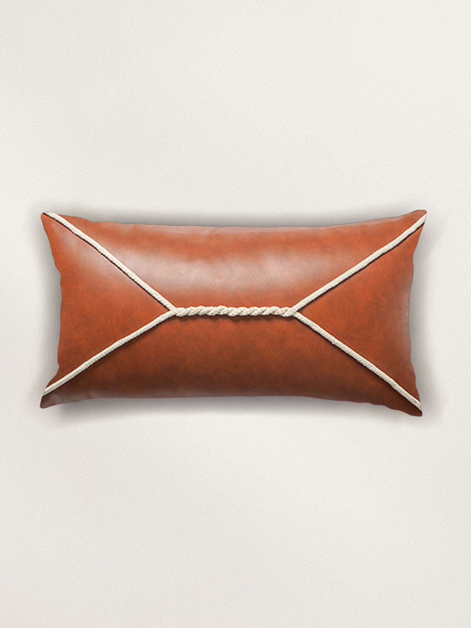 Leather Cushion Cover - Rust ,Hand Work, 12x22 inches, Set of 1