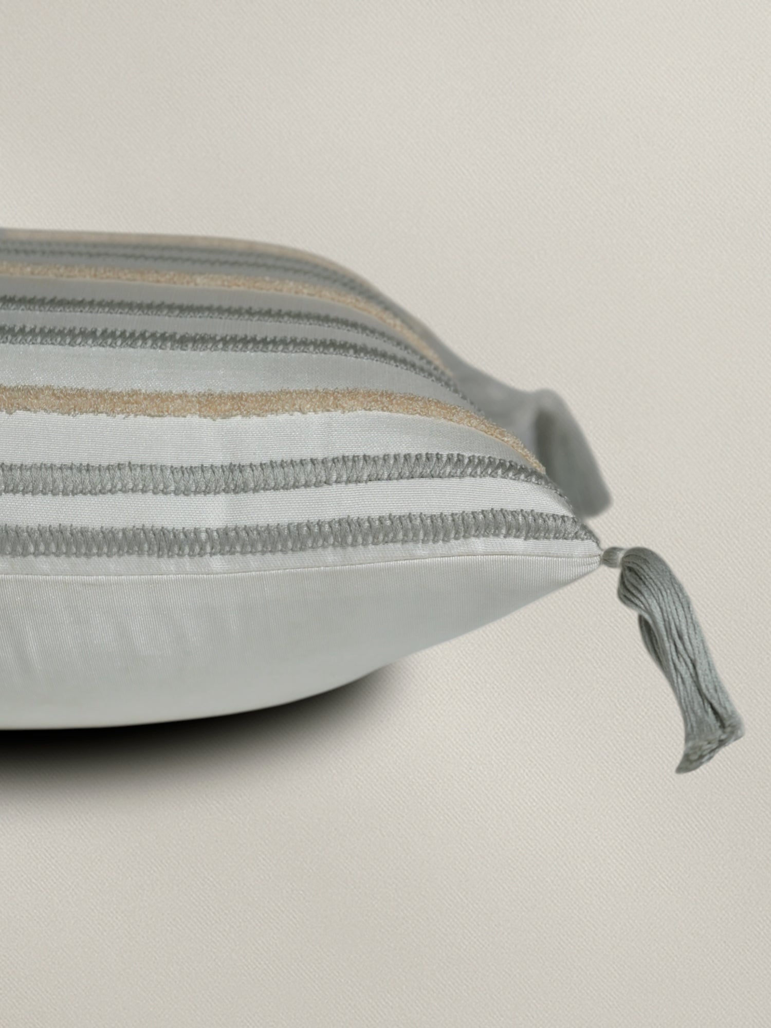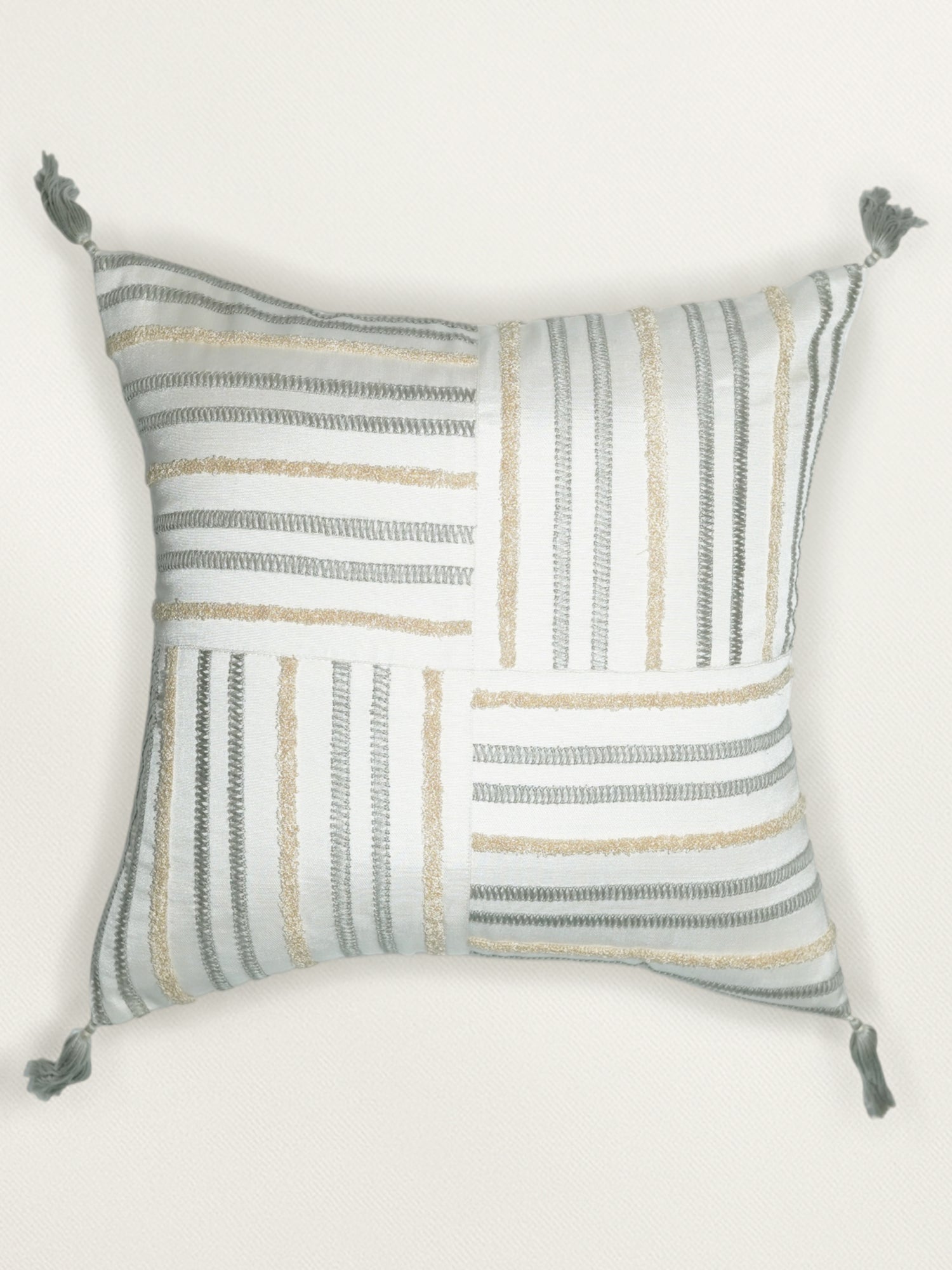 Polyester Blend Cushion Cover - Patch Work, Hand Work, Towel Embroidery & Tassels, Off White, 16x16 inches, Set of 1