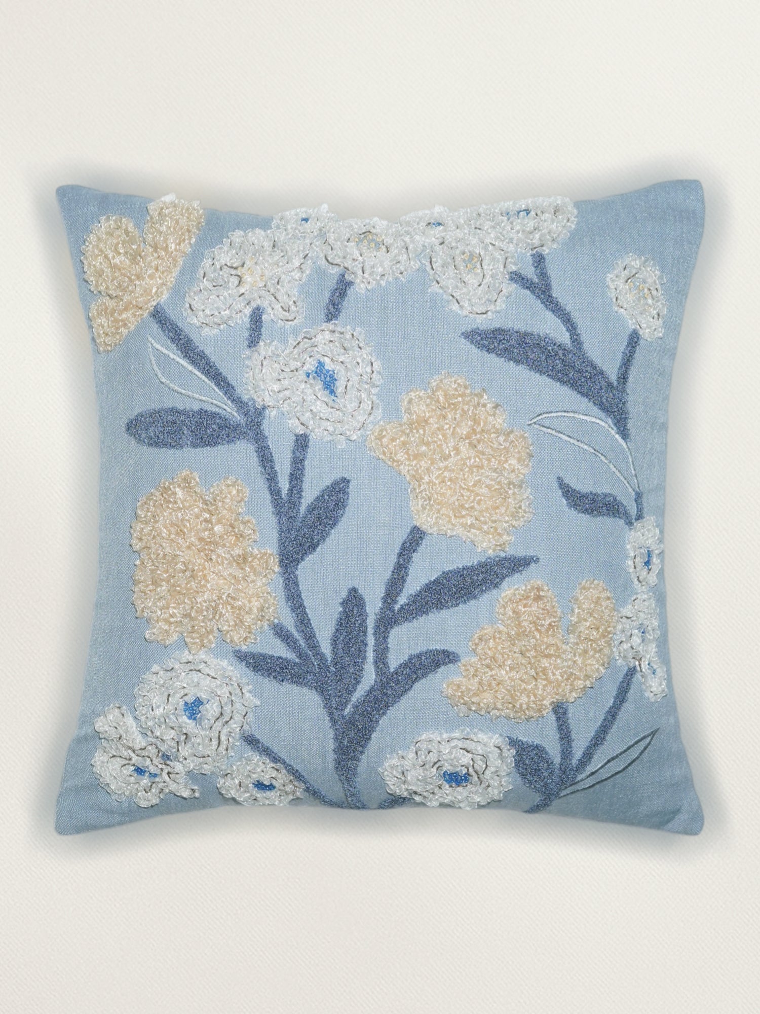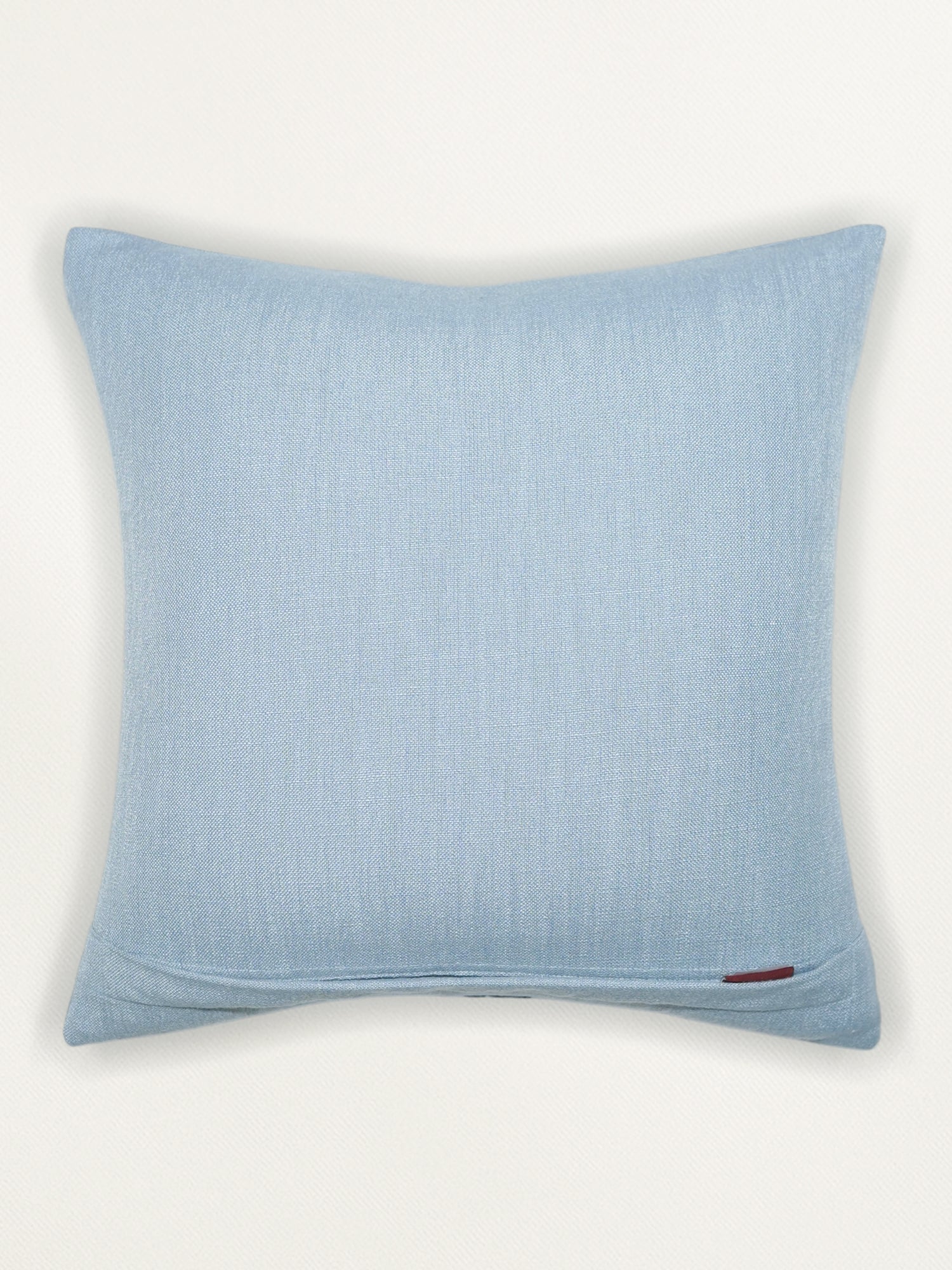 Elevate your living space with this Blue cushion cover with Aari work and detailed cord and ribbon handwork. Crafted from a soft yet durable Polyester blend and measuring 16x16 inches single cushion cover. The deep Blue color adds a calming elegance, while the handcrafted brings a touch of traditional artistry to modern interiors. A refined choice for those who appreciate subtle luxury and artisanal detail.