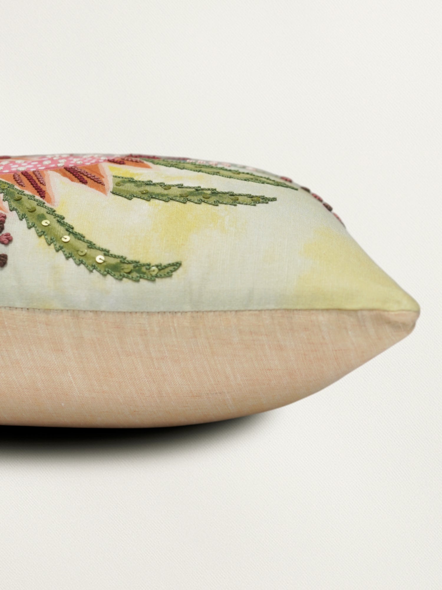 Add an elegant charm to your home with this white linen cushion cover from Zeba. Designed in a 12x22 inch size, it features a beautiful combination of hand embroidery and digital print that creates a rich, artistic appeal. Made from soft and breathable linen, it blends traditional craftsmanship with modern design, offering both comfort and style. Whether placed on a sofa, armchair, or bed, this single cushion cover brings a light, luxurious touch to any setting.