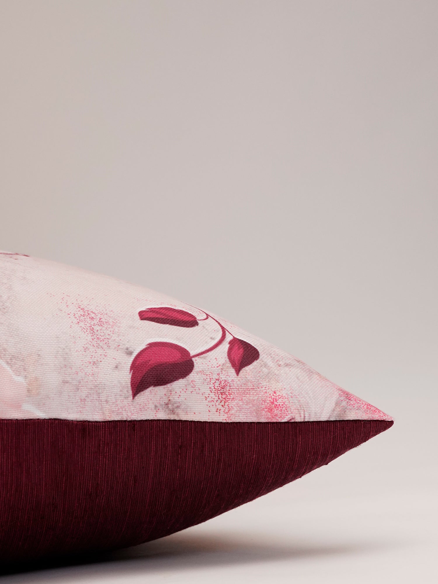 These 16X16 cushion covers have a very modern and contemporary vibe. The beautiful dark pink color looks amazing against the gentle pink backdrop of the cushion cover. The dark pink floral leaves look mesmerizing in their free-flowing state. This 16"X16" cushion cover makes an amazing addition to your home.
