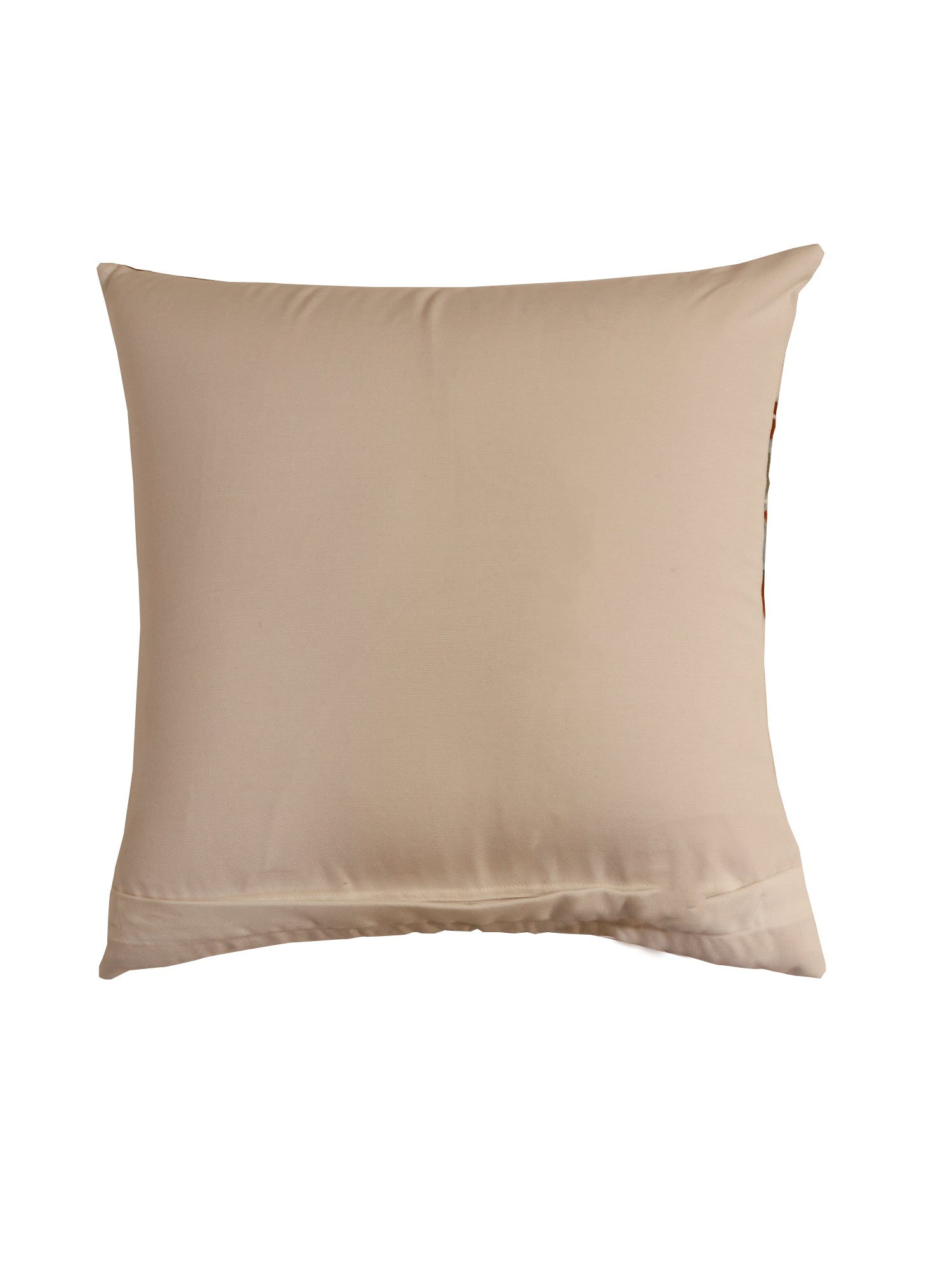 The simplicity of this cushion cover is what makes it amazing. The beautiful pearl white color of this cushion cover is like a blank canvas for the mesmerizing designs of beautiful flowers and leaves. These brilliant designs are colored in beautiful shades of blue, green and orange, which make this 16"X16" cushion cover perfect.