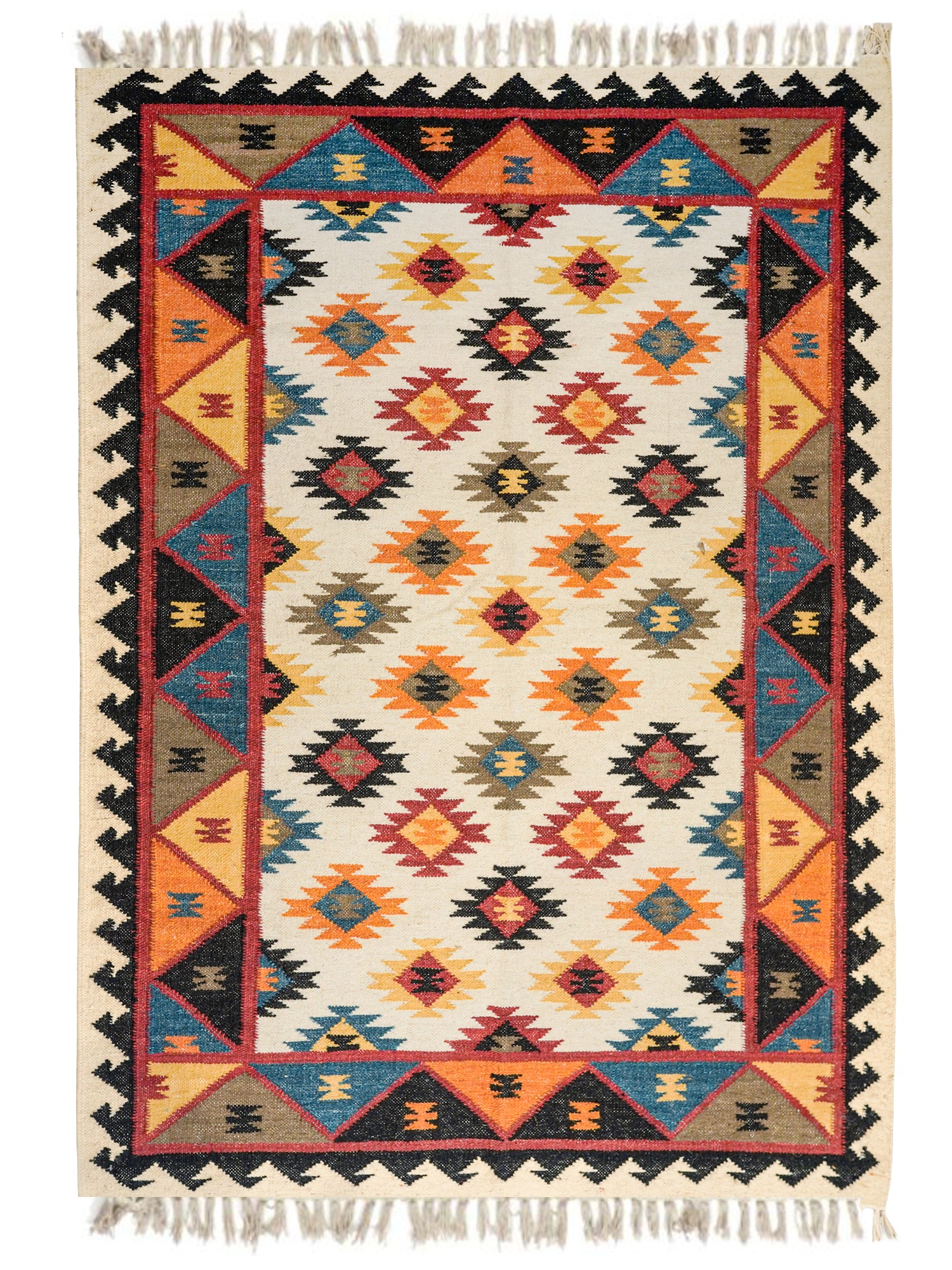 Add a splash of color and style to your home with this abstract kilim designed dhurrie made from 100% wool. Upgrade your home decor and make your guests stunned with this chic product. This 4x6 feet hand-woven dhurrie is sure to be your favorite.
