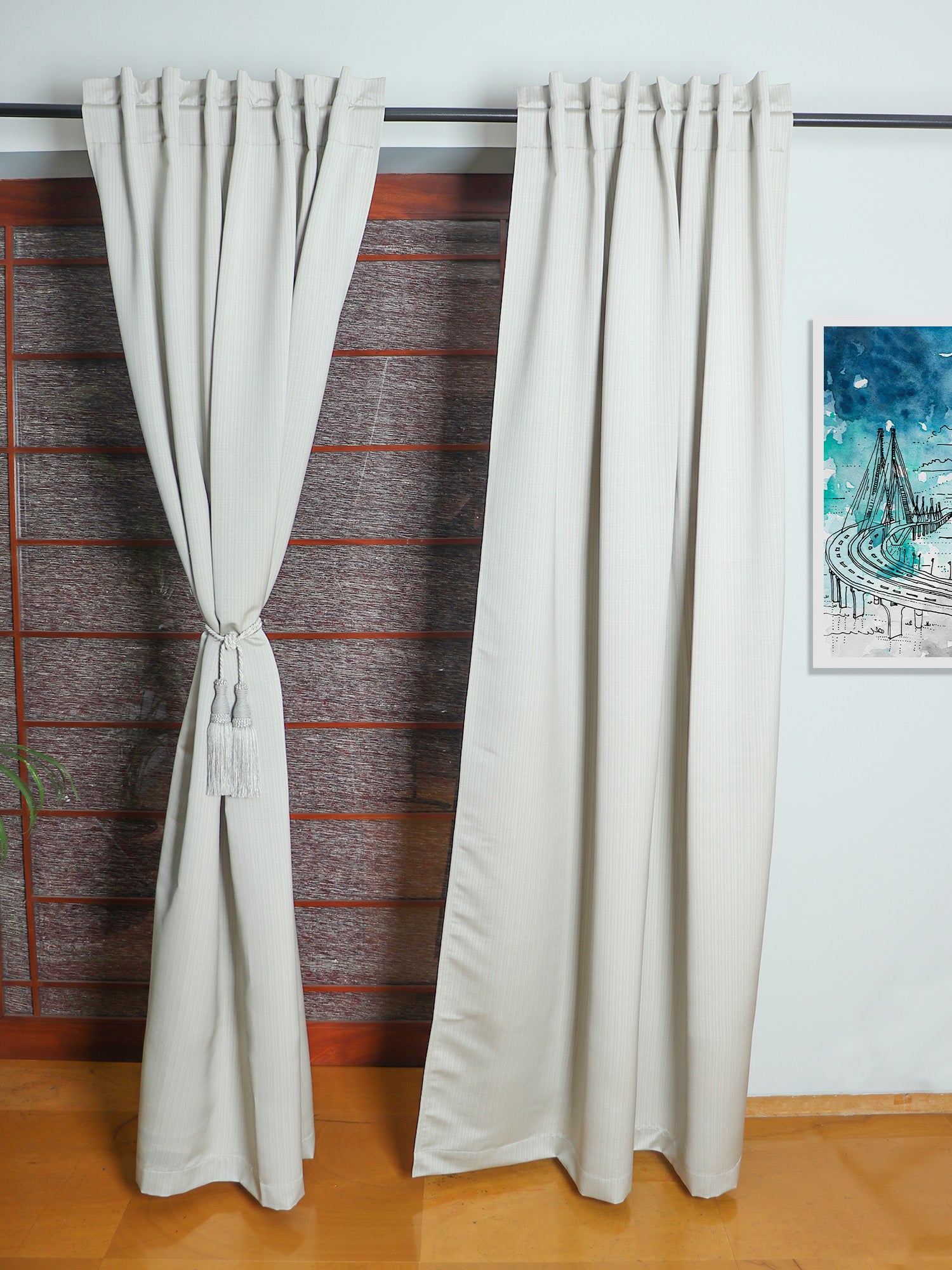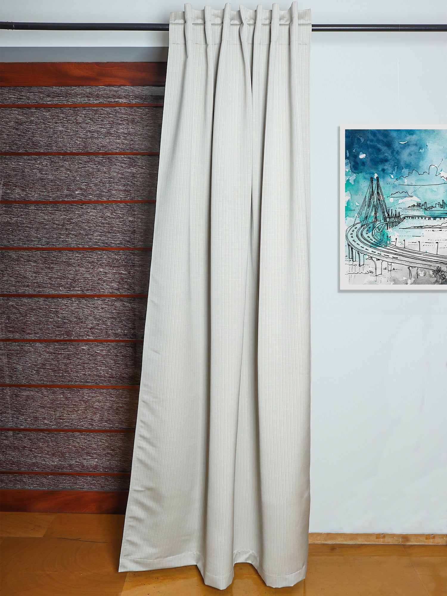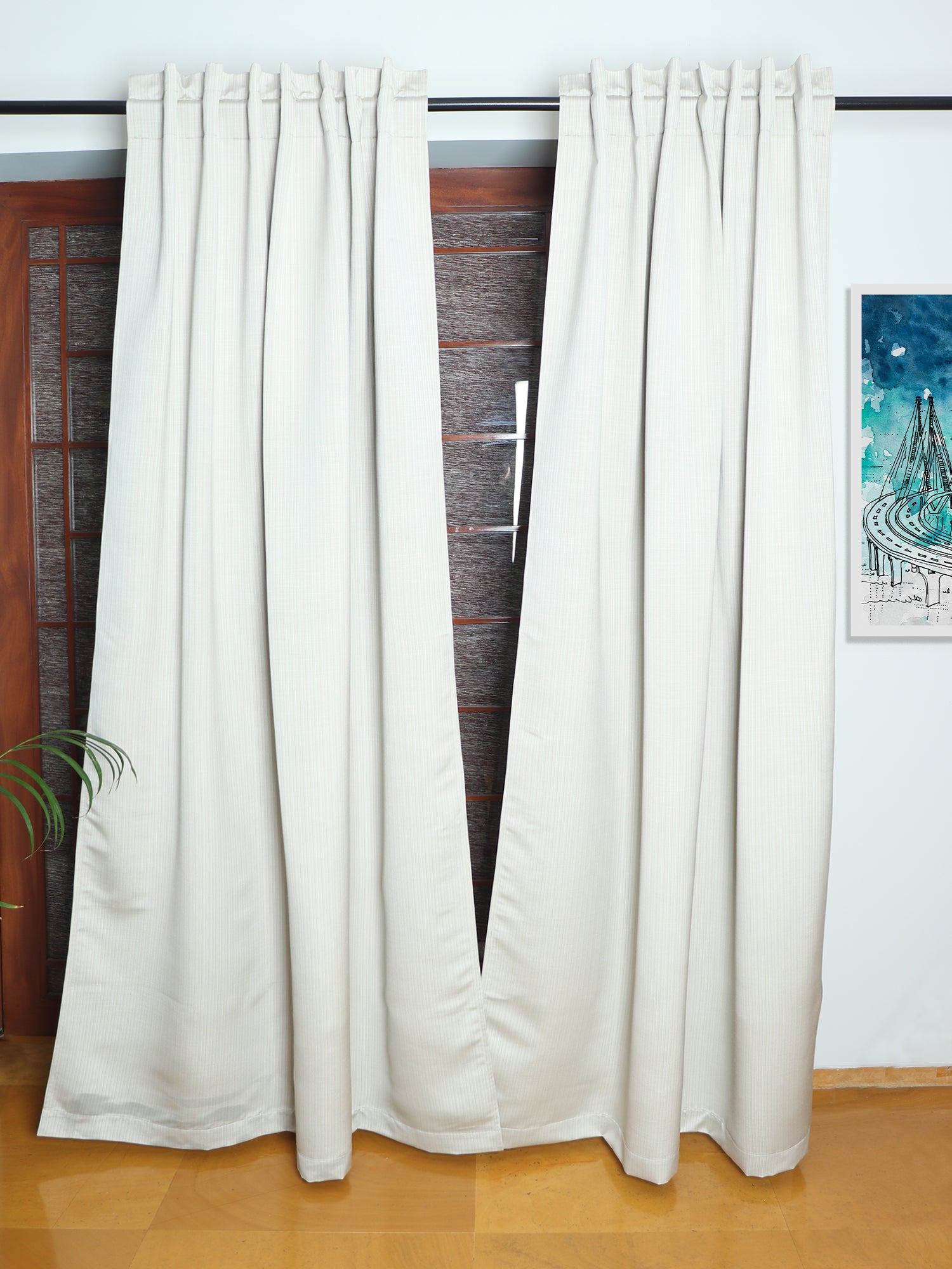 Redefine your home setting with our off white classy 7 feet door curtain. Offering a quality curtain with solid pattern, this product gives a trendy and modern look to your home. It has hidden loops but crafted in a way to provide free movement and easy use.
