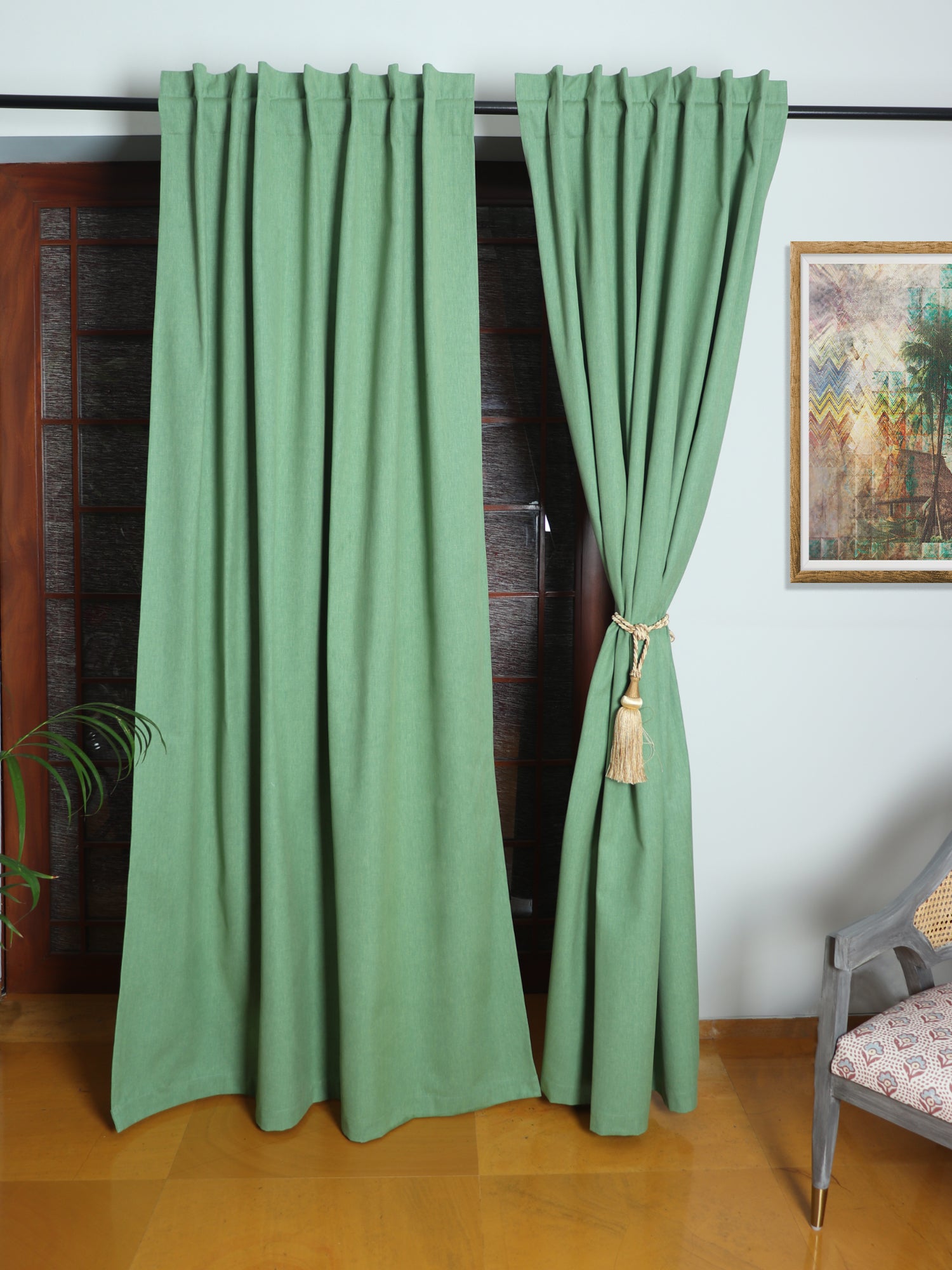 Door Curtain Cotton Solid Green - 52" X 84" (Hidden Loop) (7ft)