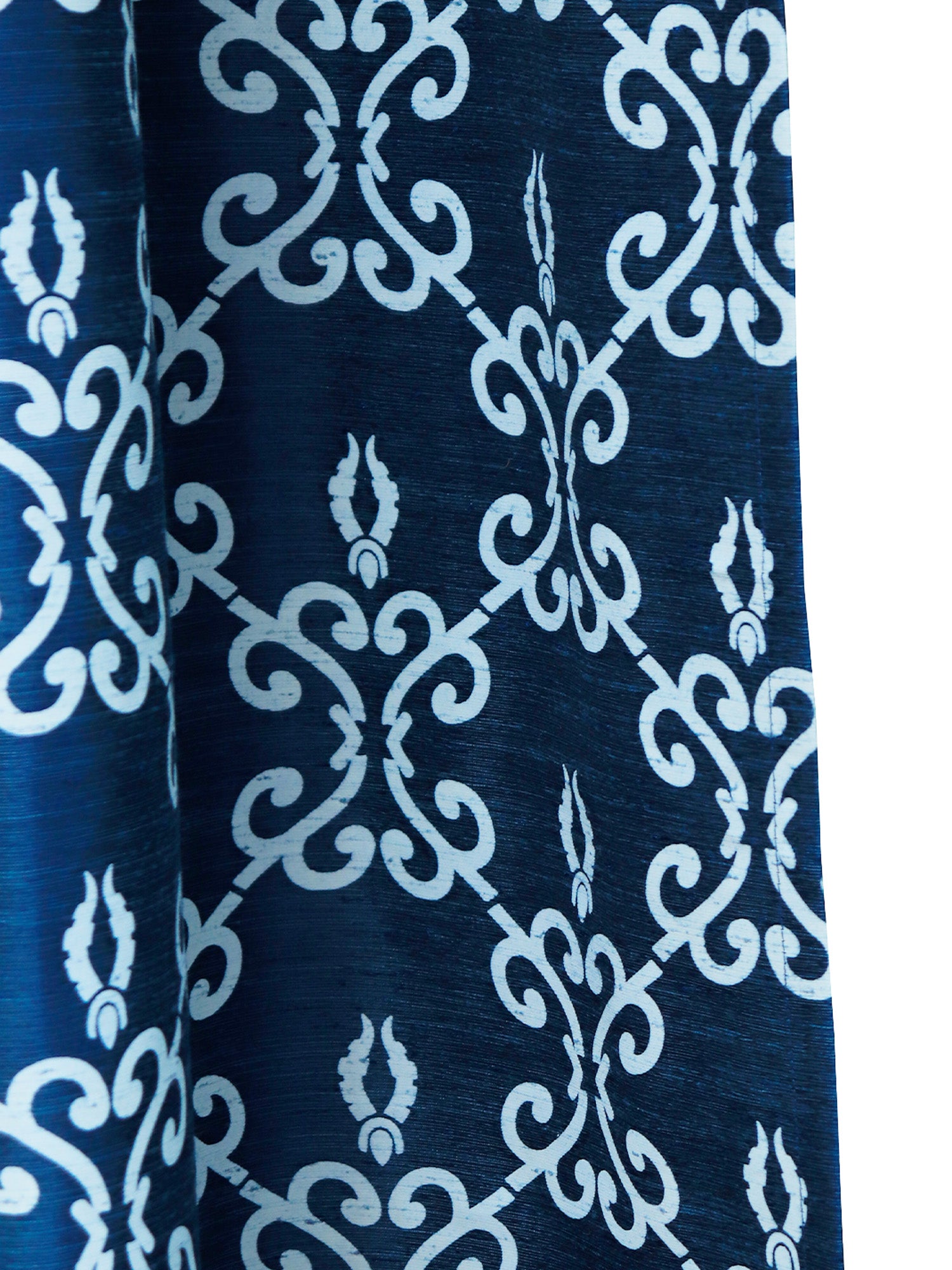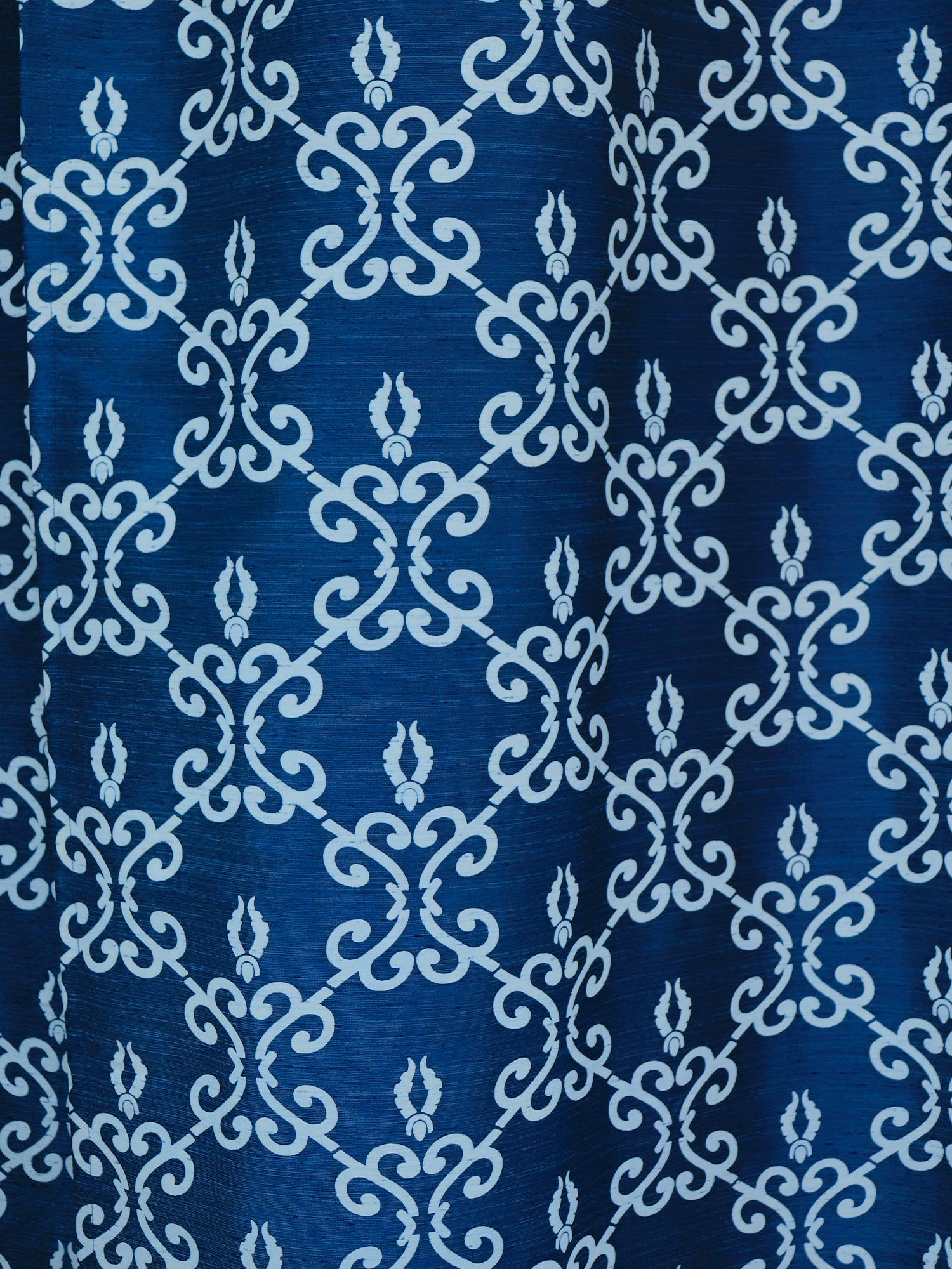 These stunning blue curtains with a captivating abstract block print in white will elevate the ambiance of any room.