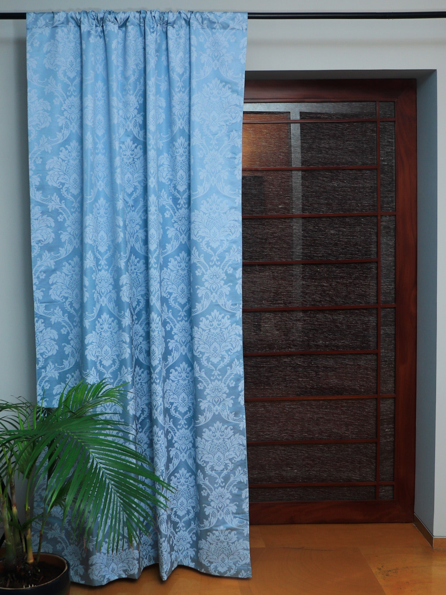 Exotic living space has never been classier, inspired by Abstract Floral screen printed in White against Blue fabric. Adding a lovely ambiance to any room they're placed in, these Blue Curtains have a contemporary feel, alongside the colour, making any home feel vibrant and cheerful. These curtains will look beautiful in a simplistic and modern environment, perfect as curtains for home or curtains for living room. These 52x90 in curtains are seamlessly tailored for quality and have a rod pocket for the curtain heading for the pleats to fall elegantly.