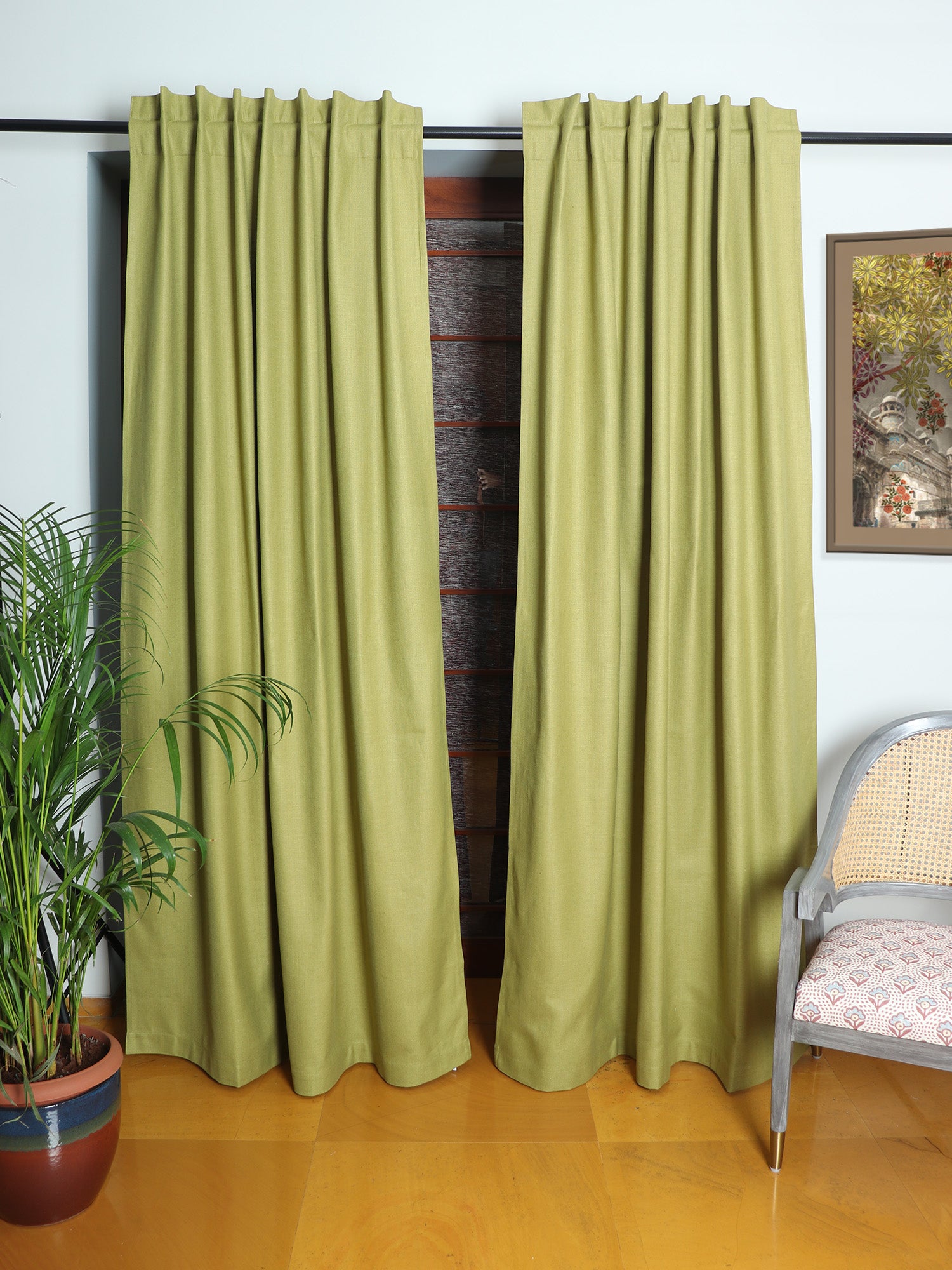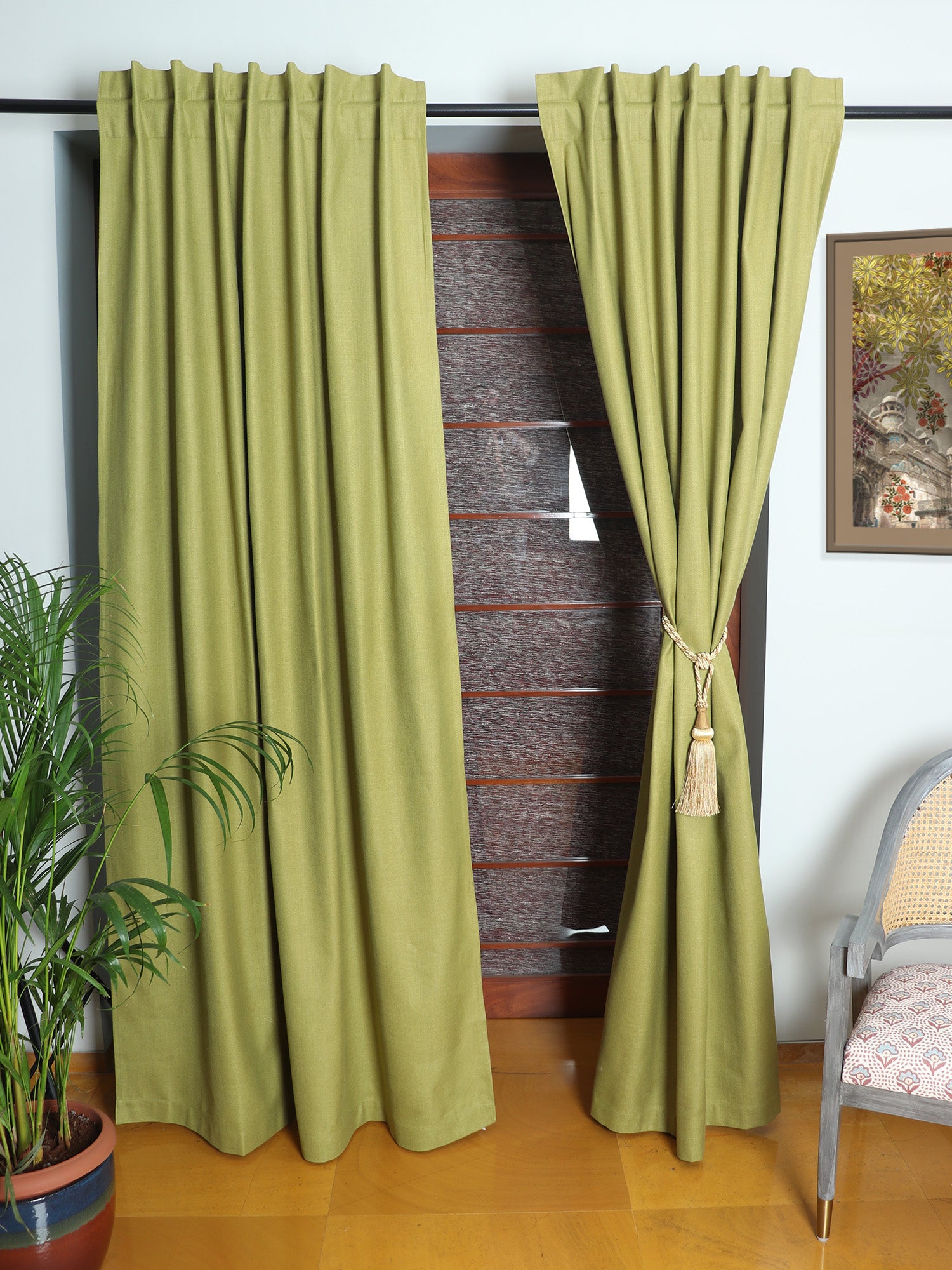Door Curtain Self Textured Cotton Blend Green - 52" X 84" (Hidden Loop)