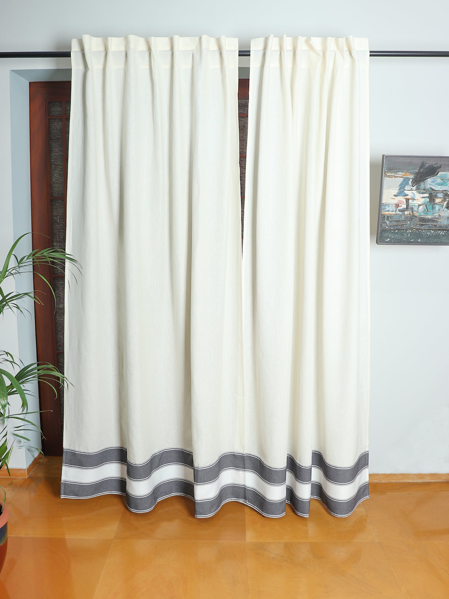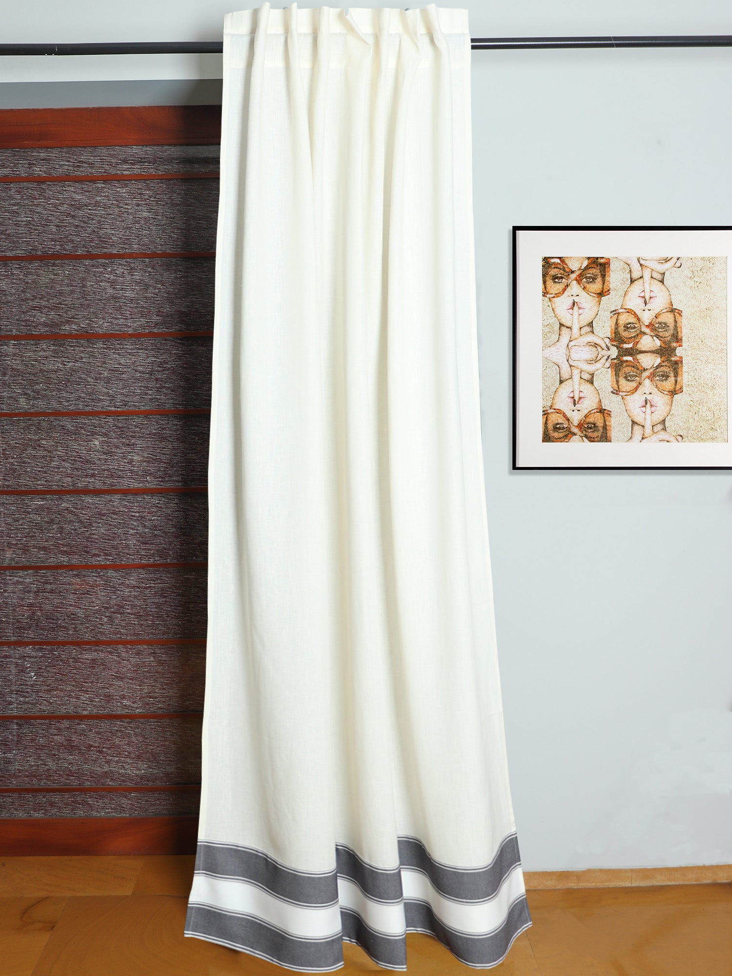 Bring a touch of elegance to your home with this contemporary cotton blend 52x84 inches door curtain. The beautiful white colour will effortlessly add refinement to your space. This curtain will undoubtedly go well with your interior style, whether you want a soft flair or a cozier ambiance.