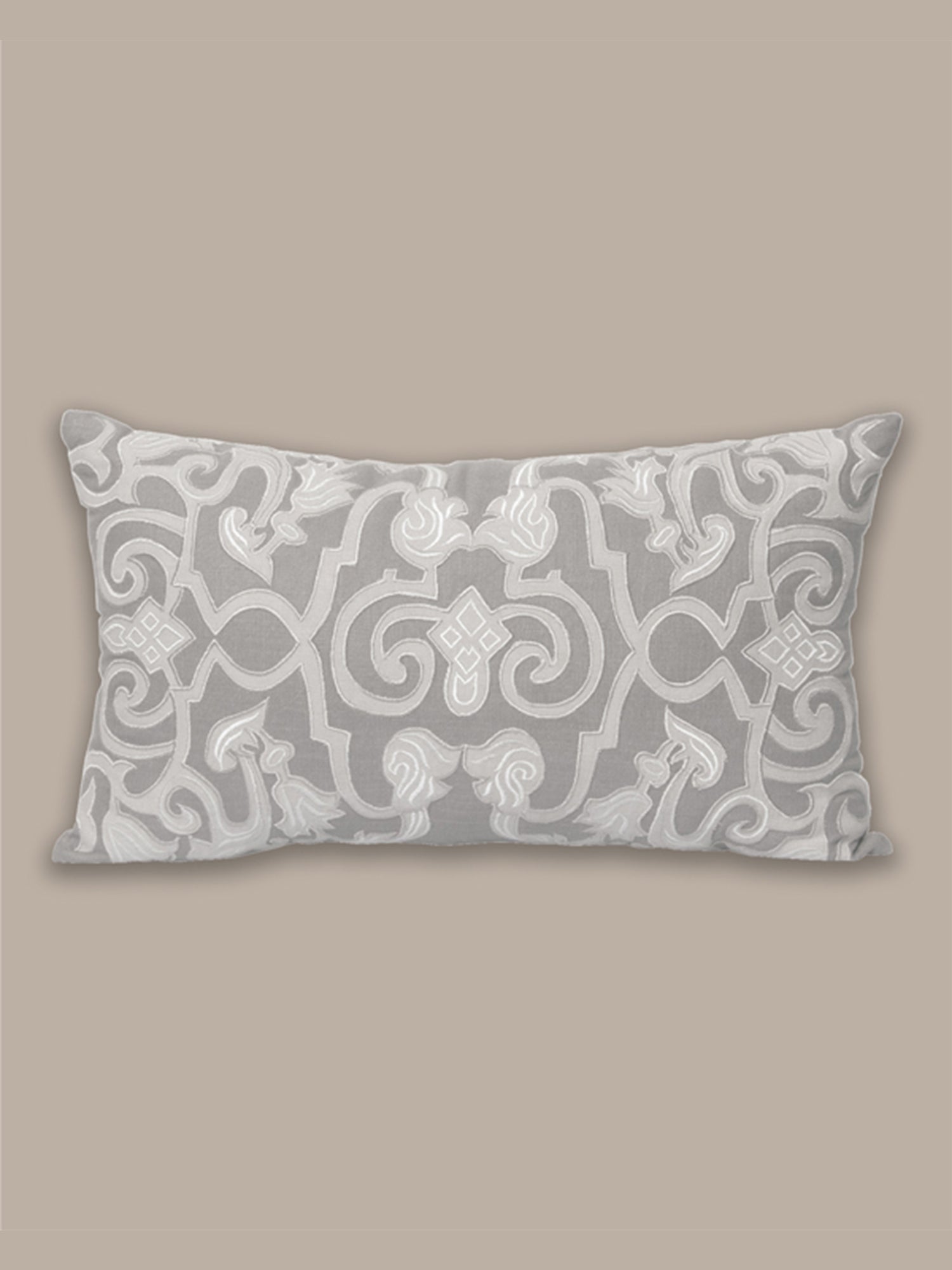 Hand Embroidered Cotton Cushion Cover | 12 Inch x 20 Inch | Beige