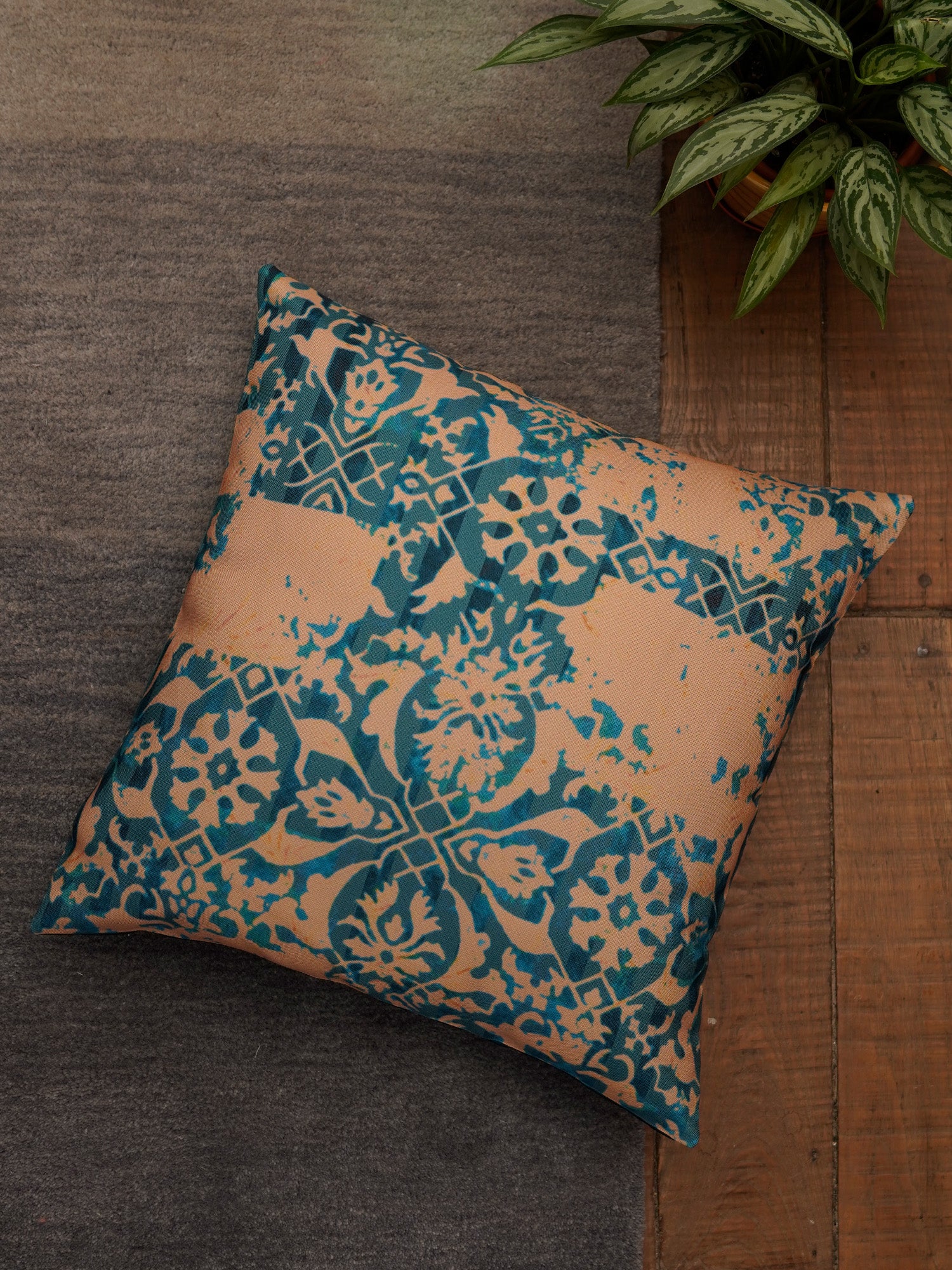 Cushion Cover Polycanvas Ocher Blue Contemporary Ocher Blue - 16" X 16"