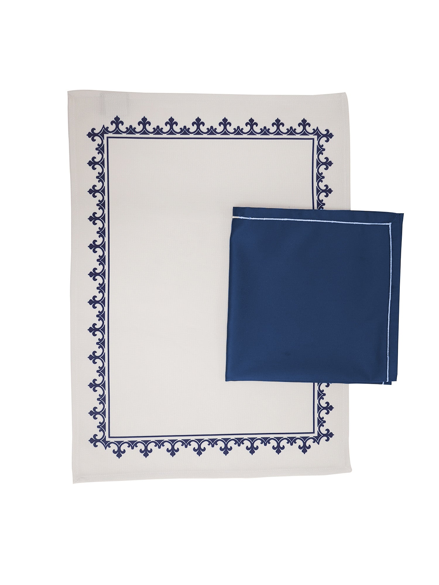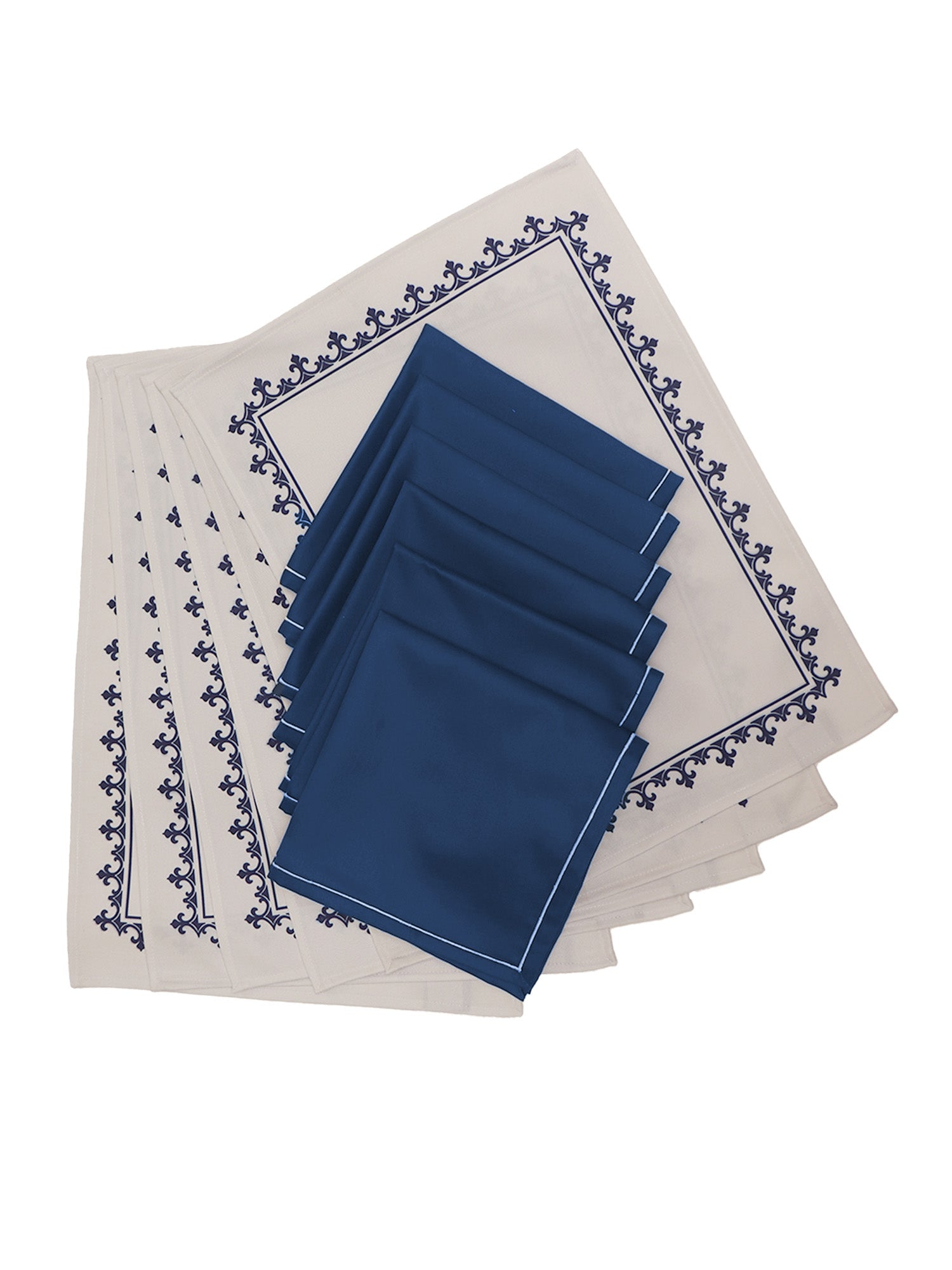 Printed Mats Napkins (Set of 6 each) Cotton Blend White Blue - 13x18in, 16x16in