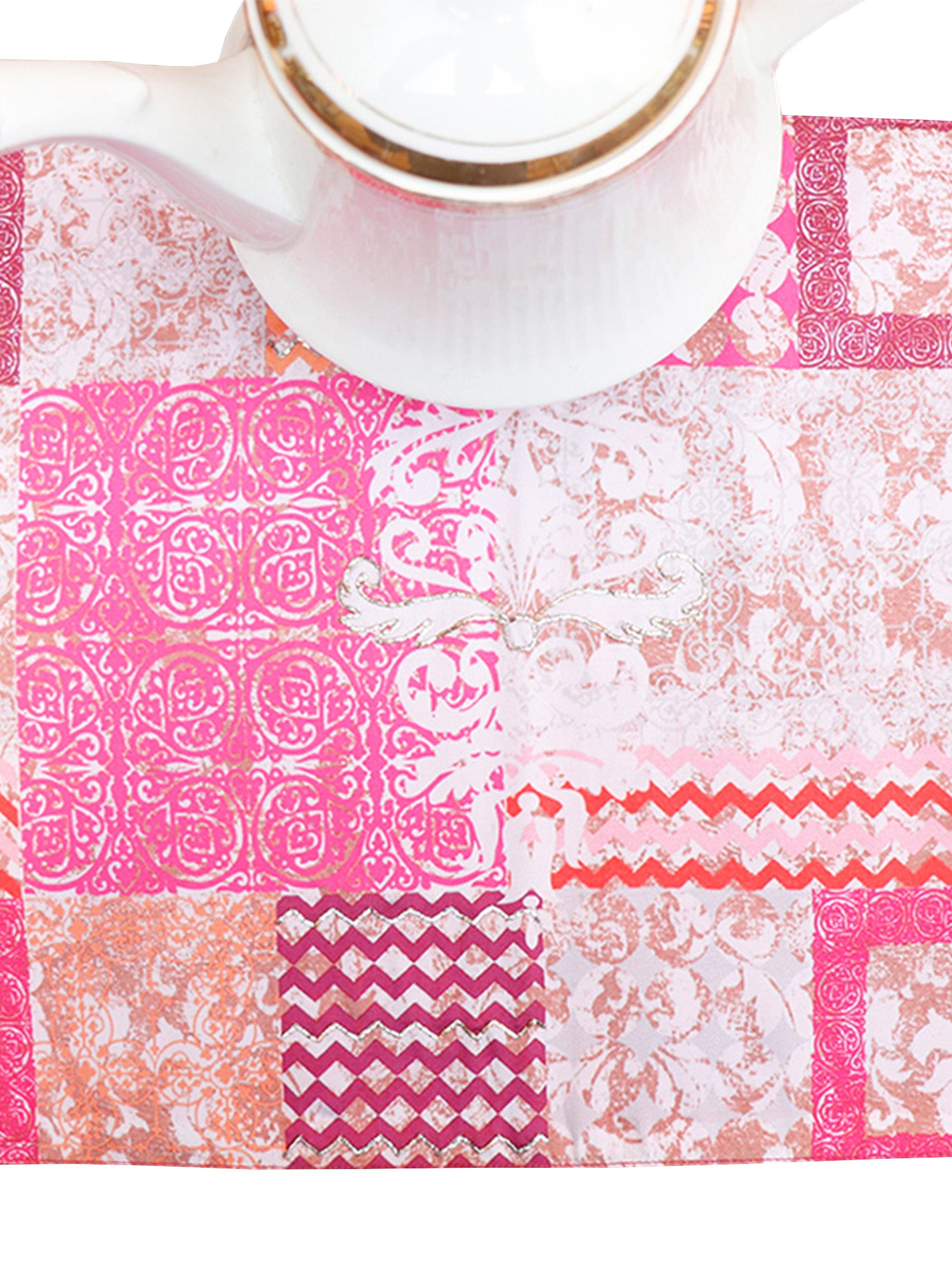 Pink Embroidered Printed Table Runner | 4 and 6 Seater | 12 Inch x 84 Inch | Polyester