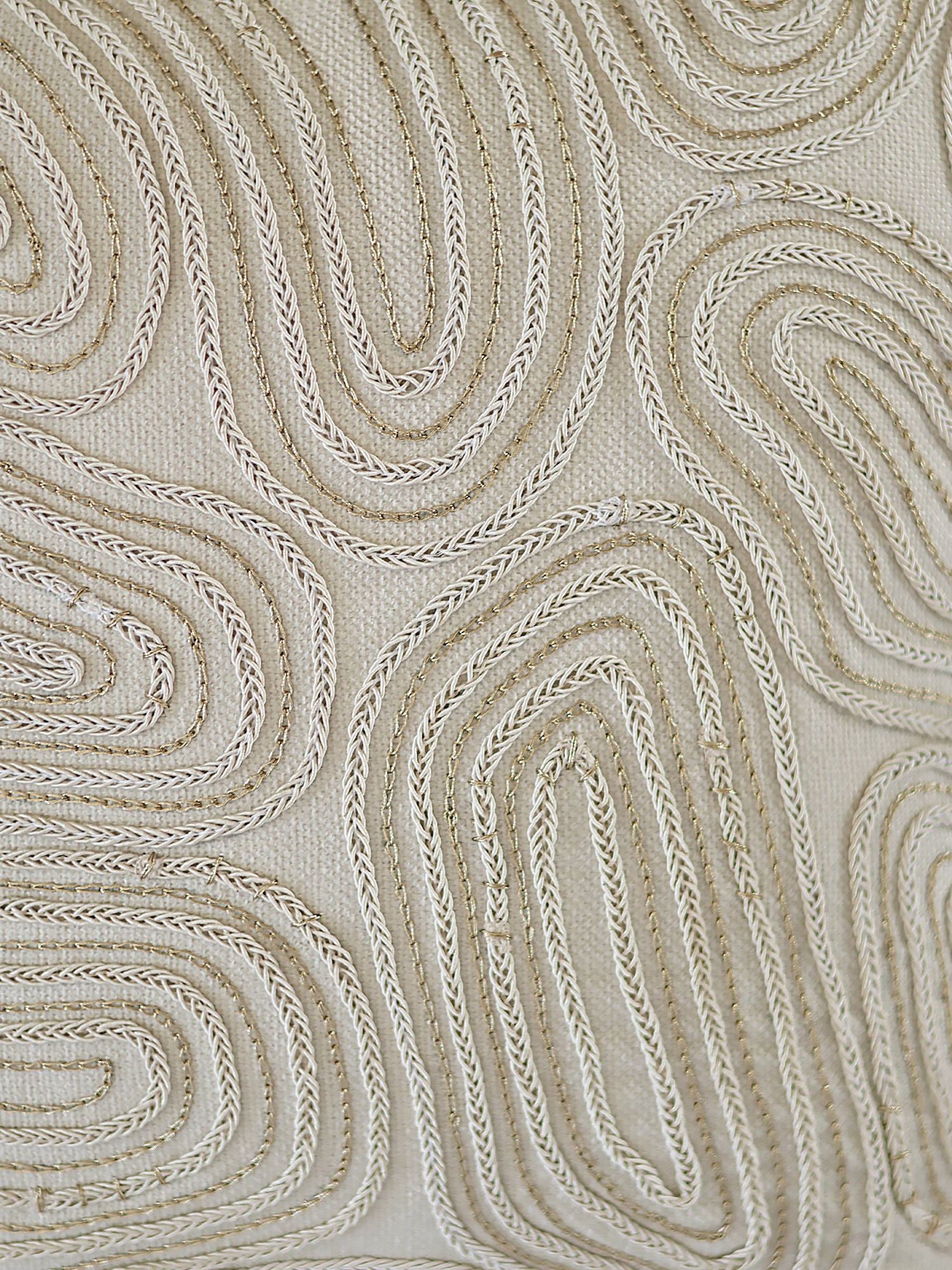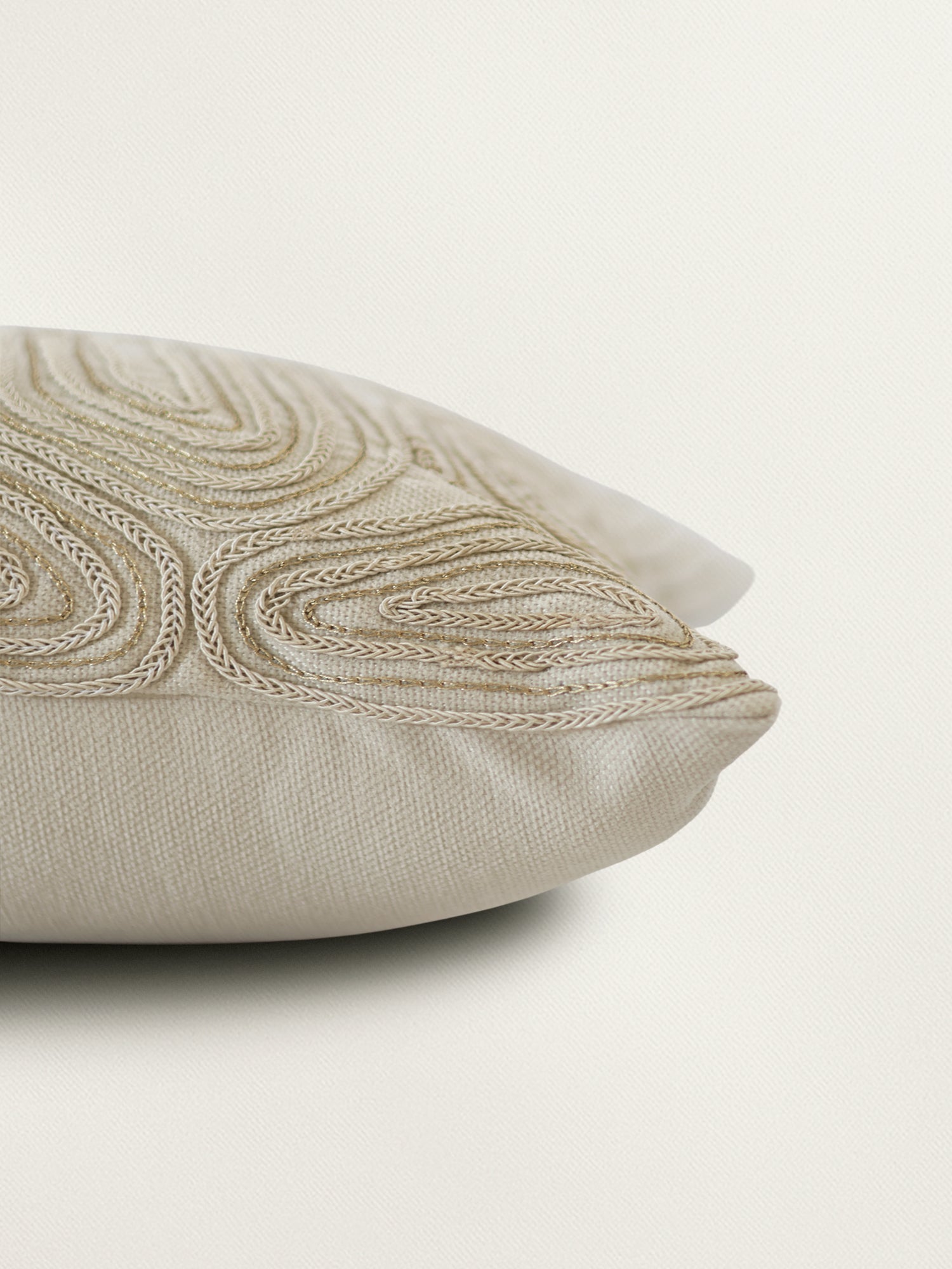 This elegant beige embroidered cushion cover from our festive collection showcases the Dori work and hand embroidery. The beige tone creates a calm and the intricate thread work adds richness and texture to the cushion cover. Crafted from a soft polyester blend, the cushion cover combines durability and softness. The size of cushion cover is 18x18inch in set of 1. The neutral palette makes it easy to layer with vibrant festive décor or to style as a everyday decor piece.