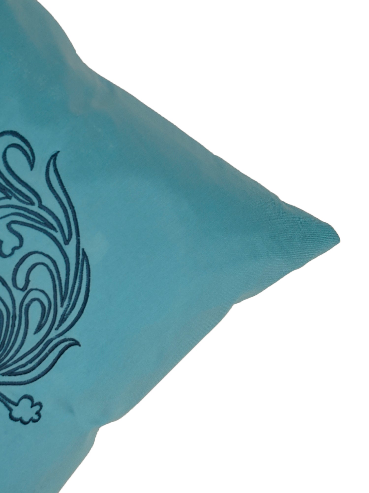 Embroidered Black Motif | Aquatic Blue Cushion Cover | Standard 16 Inch x 16 Inch | Durable Polyester Fabric