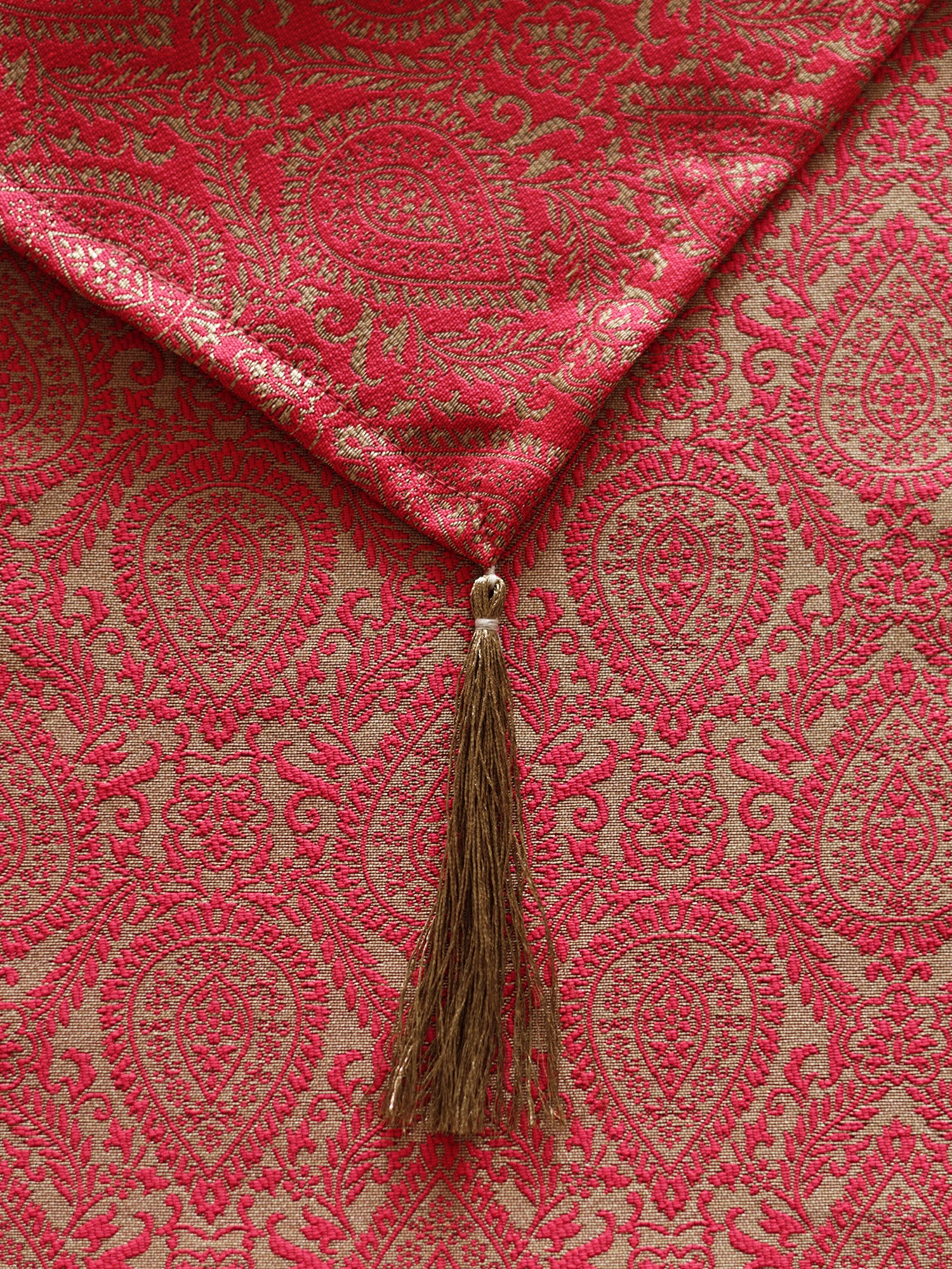 Golden Zari Broacade Table Runner with Tassels | Red | 12 x 84 inch