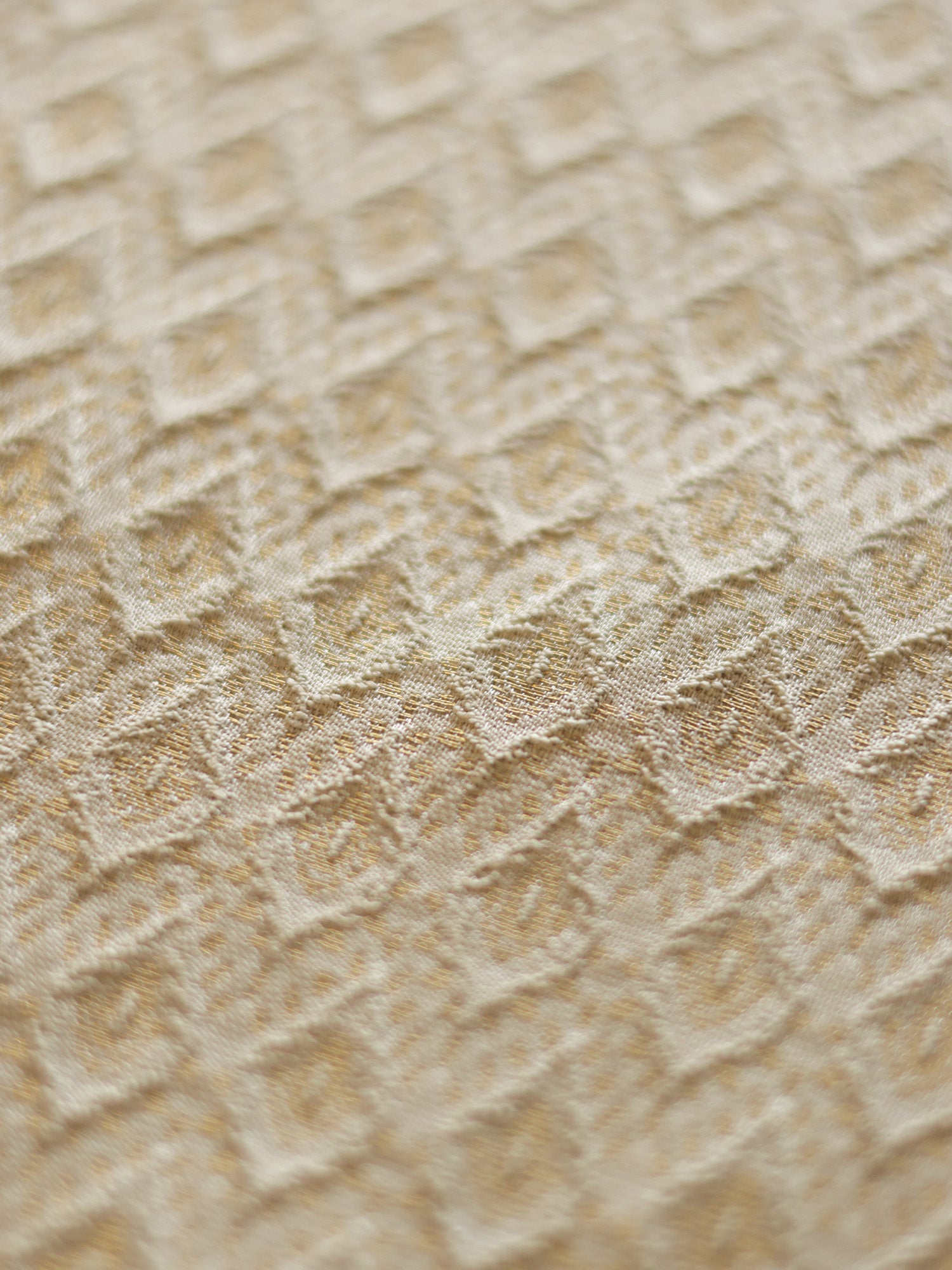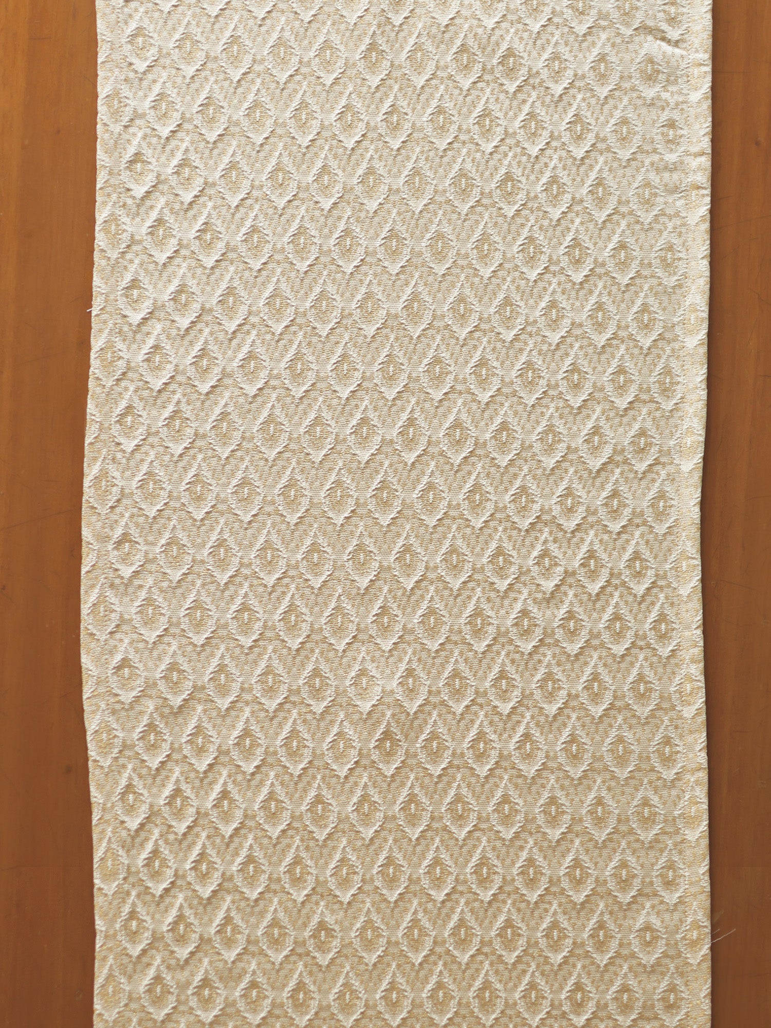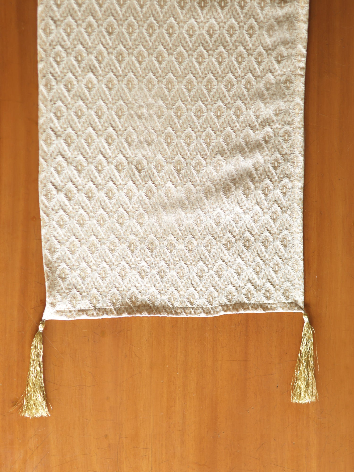 Golden Zari Brocade Table Runner with Tassels, Cream|12x48inch