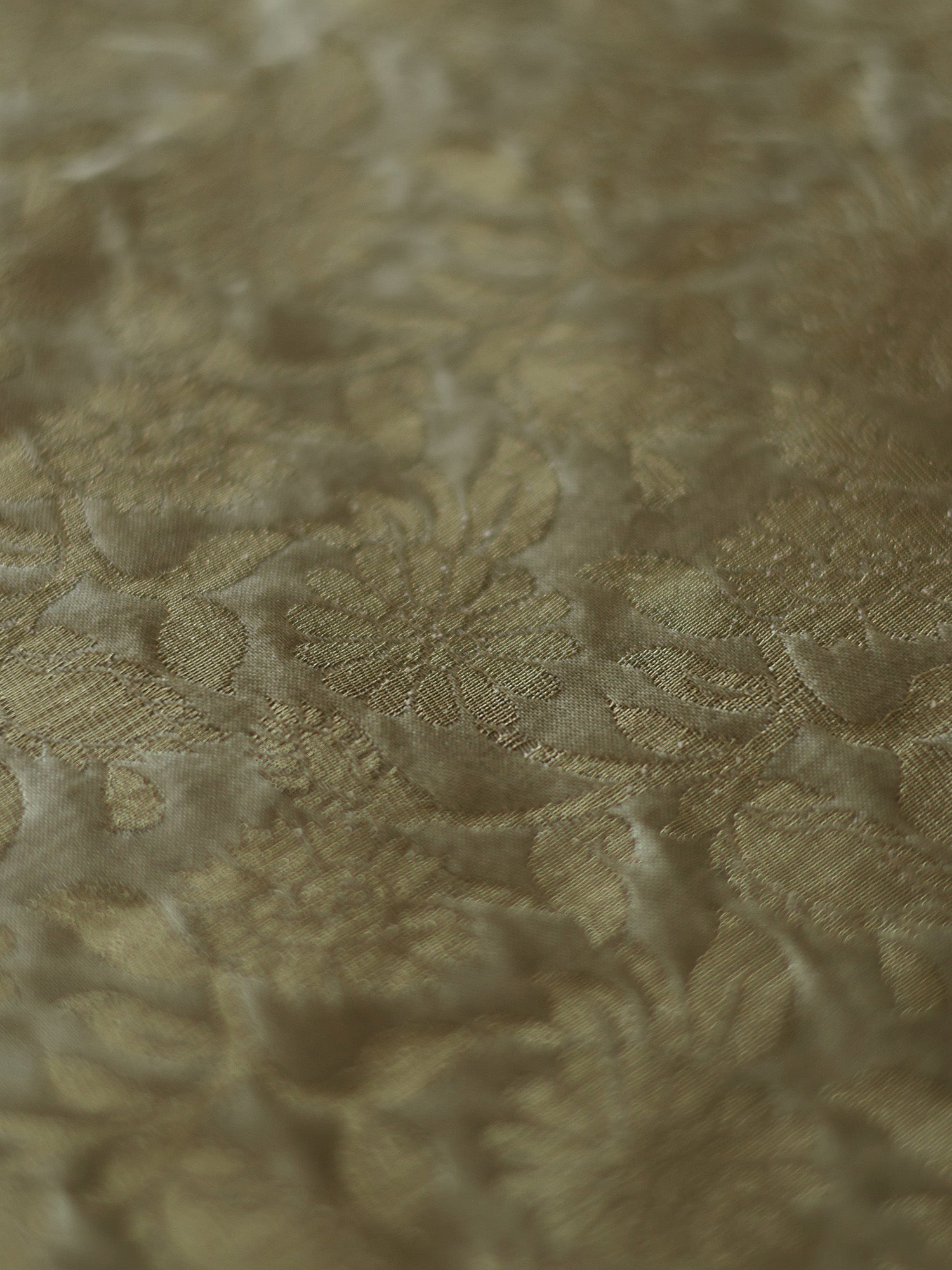 Transform your dining setup with this Grey & Golden Brocade Table Runner. This elegant runner is crafted from premium brocade fabric, known for its fine weave and rich texture. The soft grey and golden hue is beautifully contrasted by the shimmering golden border along with fine flat piping detail along the edges that offers a clean look that enhances the overall design. The runner is dangled with handcrafted golden tassels at the end, bringing a playful element. Measuring 12x84 inches, this runner is perfect for 4- to 6-seater dining tables and serves as a stunning centerpiece during your festive dinner settings.