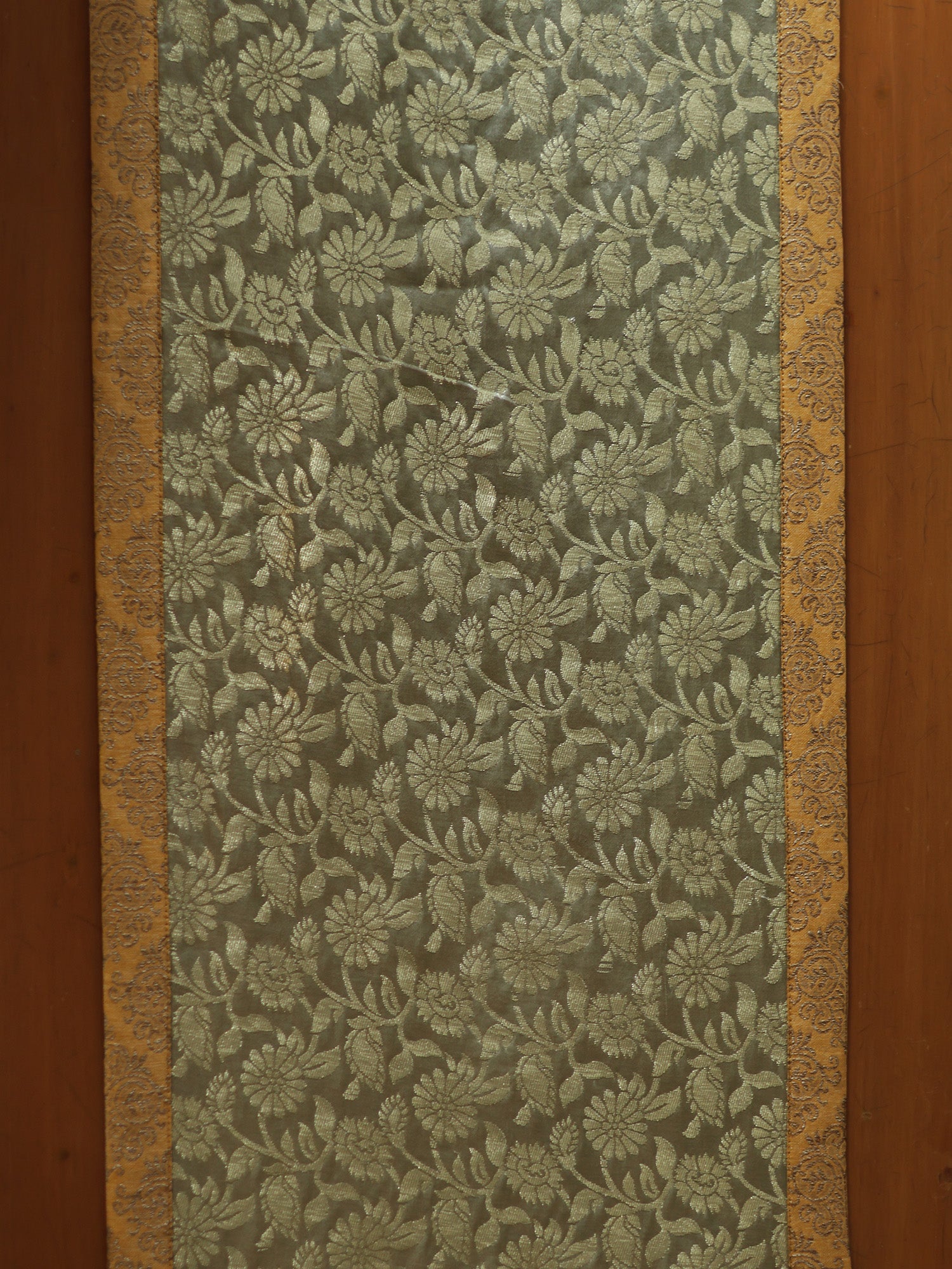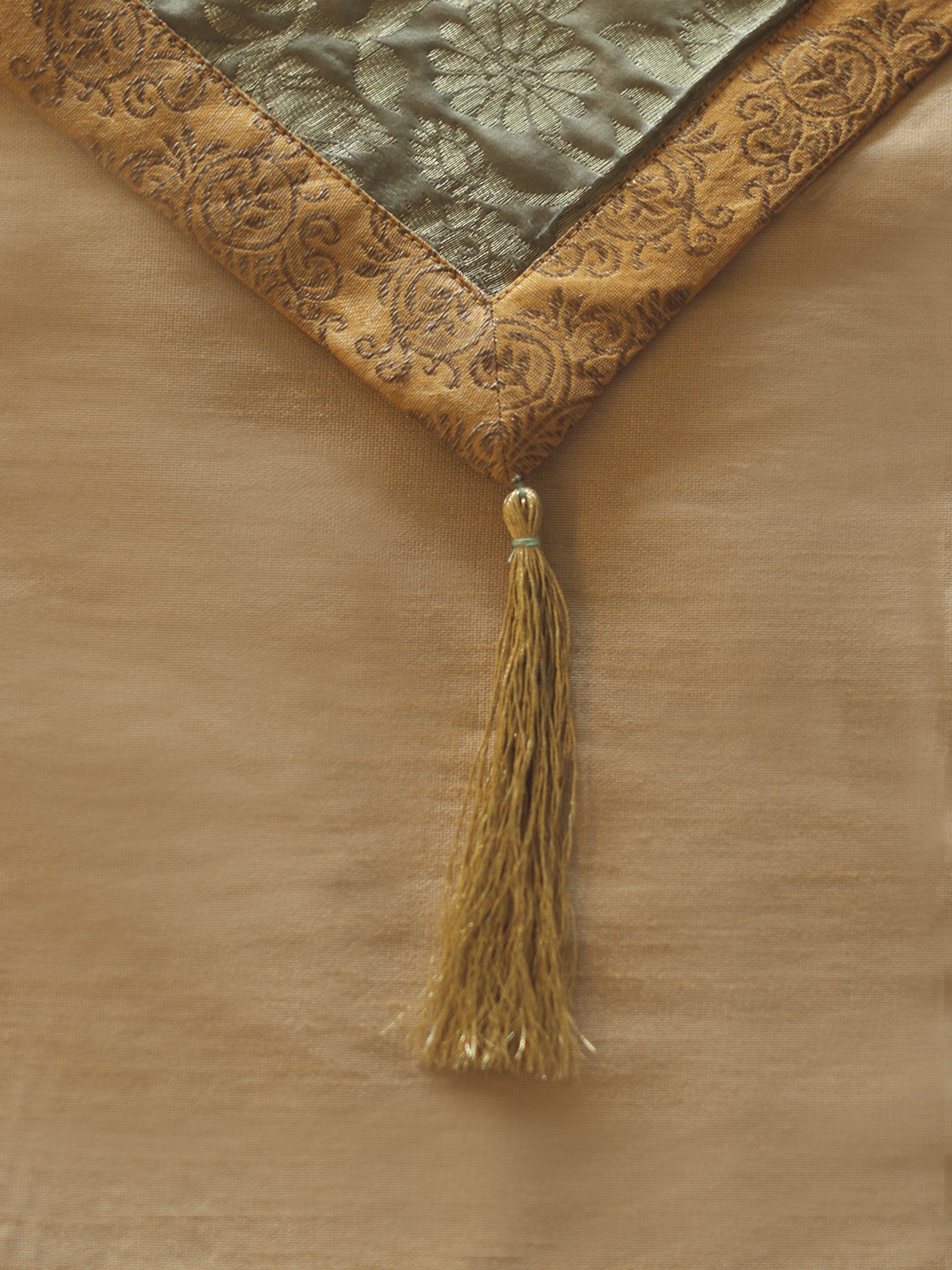 Brocade Table Runner with Golden zari and Tassels, Grey| 12x84inch