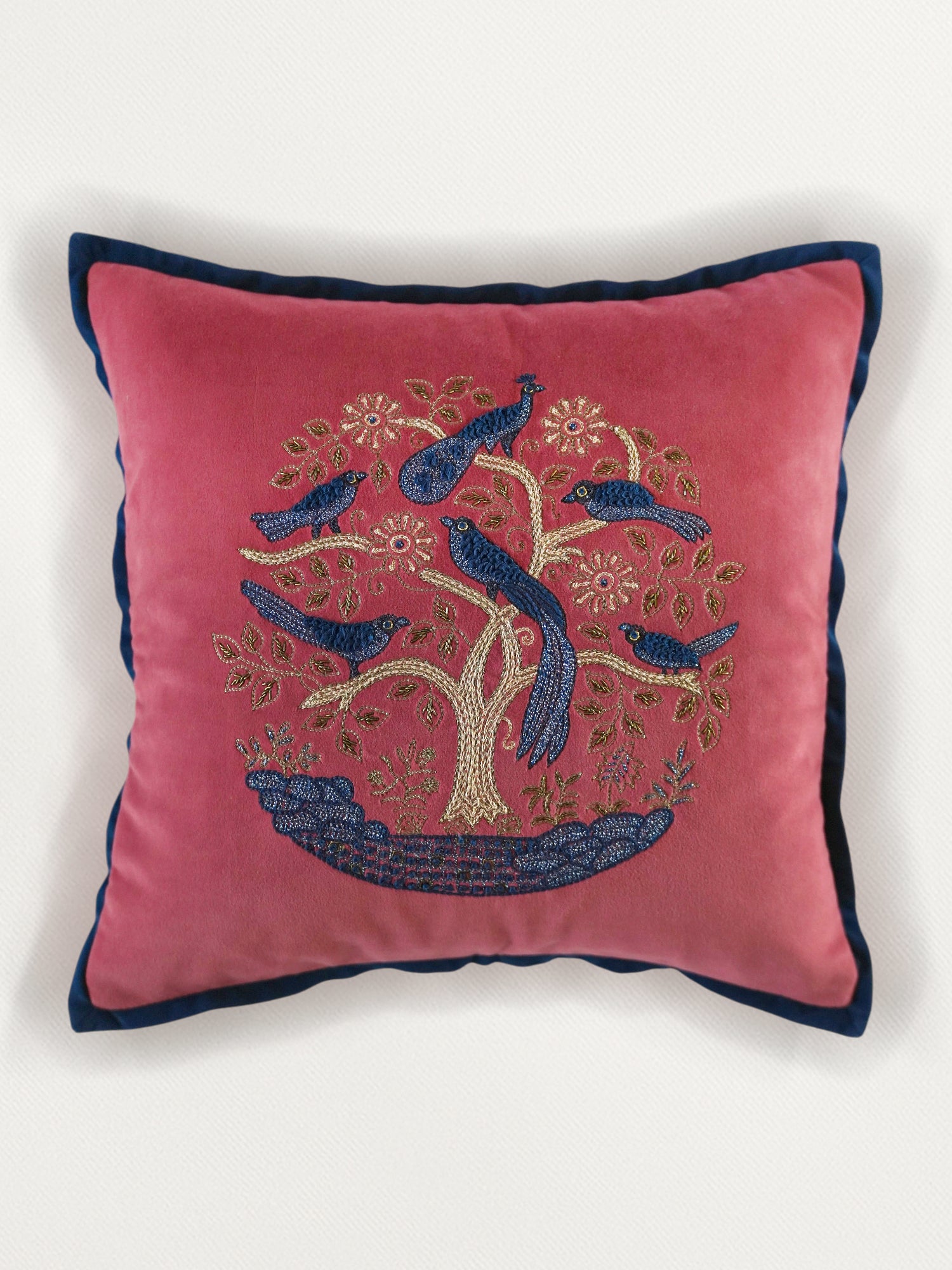 Hand Embroidered Cushion Cover 16 Inch x 16 Inch | Velvet