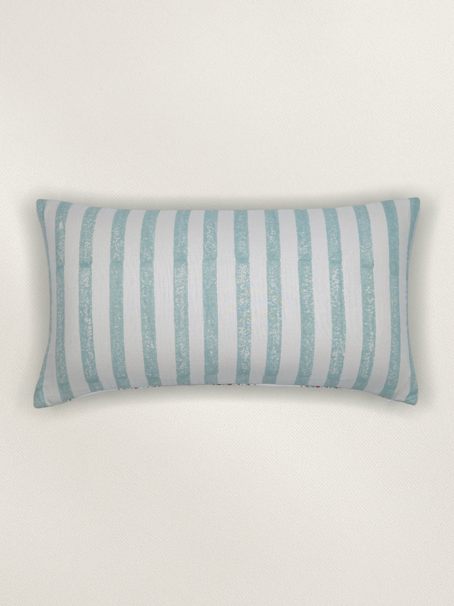Hand Embroidered Luxe Collection Cushion Covers | Block Printed with Quilted Stitching Off White - 12x22 Inches