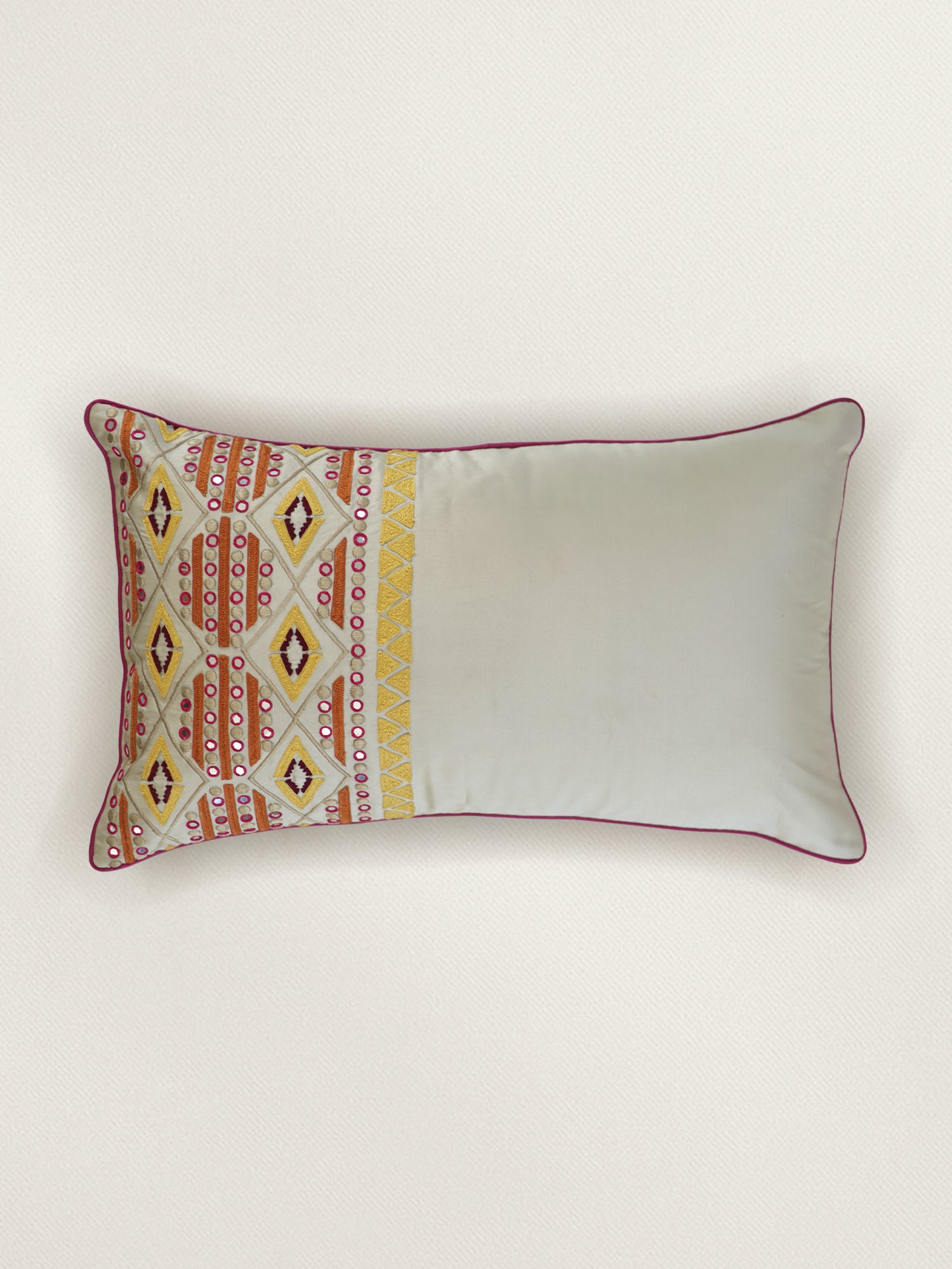 Embroidered Taffeta Cushion cover 12x20inch, Multicolor