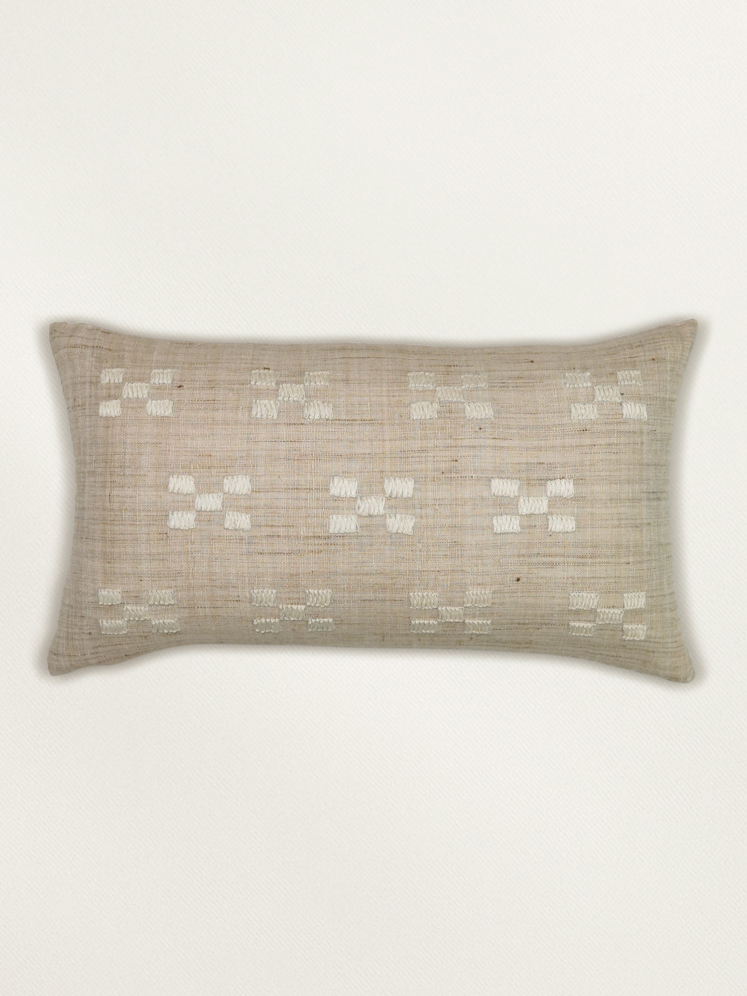 Hand Knotted Embroidered Cushion Cover | Linen 12x22 - 12x22 Inches
