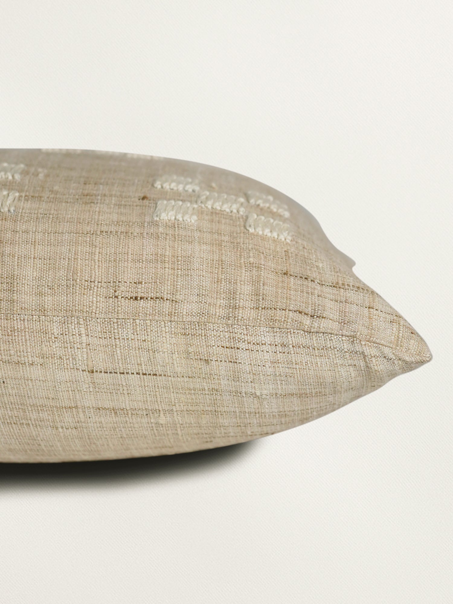 - Add a touch of elegance to your space with this exquisite cushion cover from our Luxe Collection. Crafted from high-quality linen fabric, this 12x22inch cover features a beautifully intricate hand-knotted embroidery design of tree leaves in a soft beige hue.