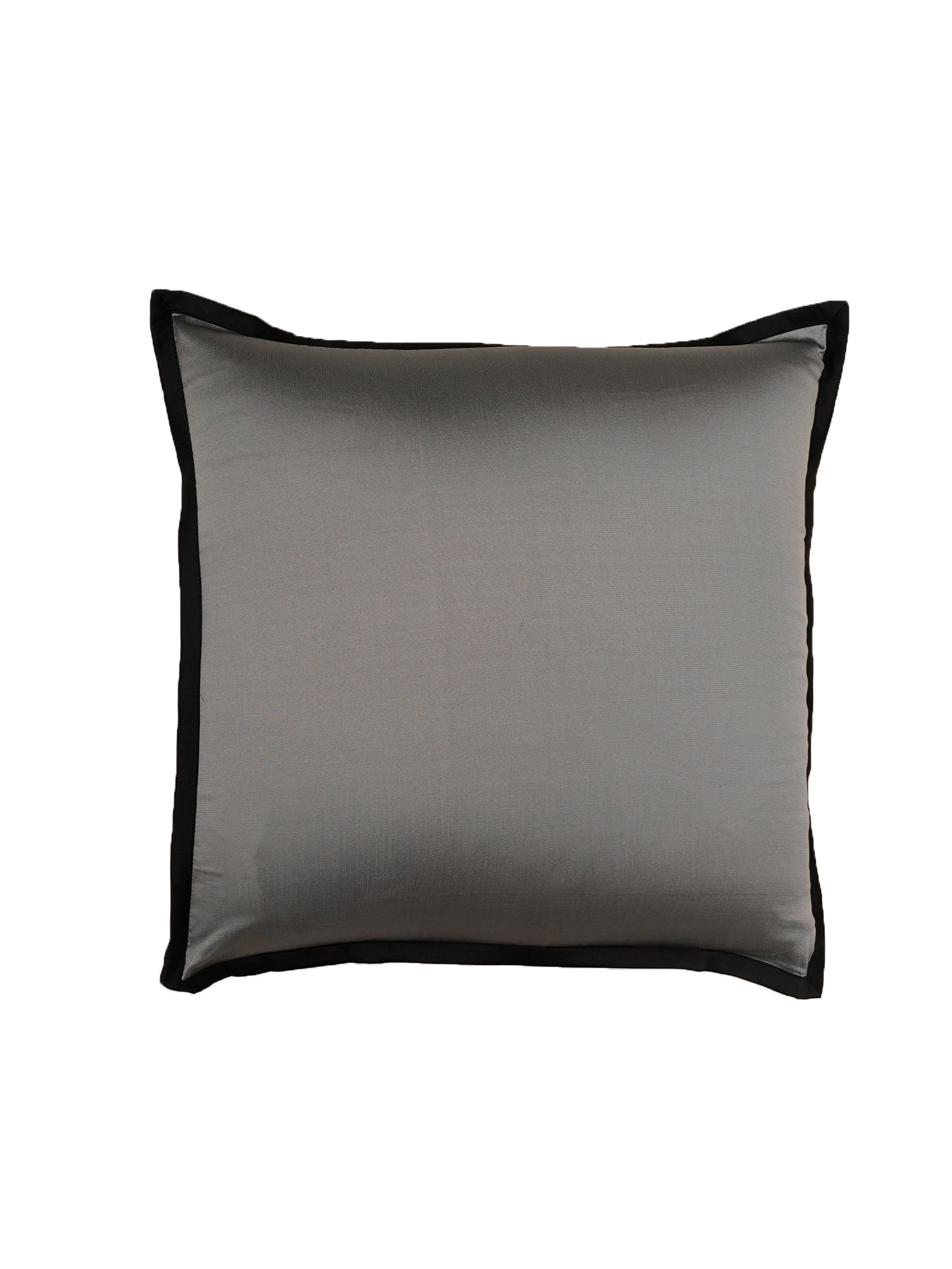 Flat Border Piping Polyester Cushion Cover | 16 Inch x 16 Inch | Grey & Black