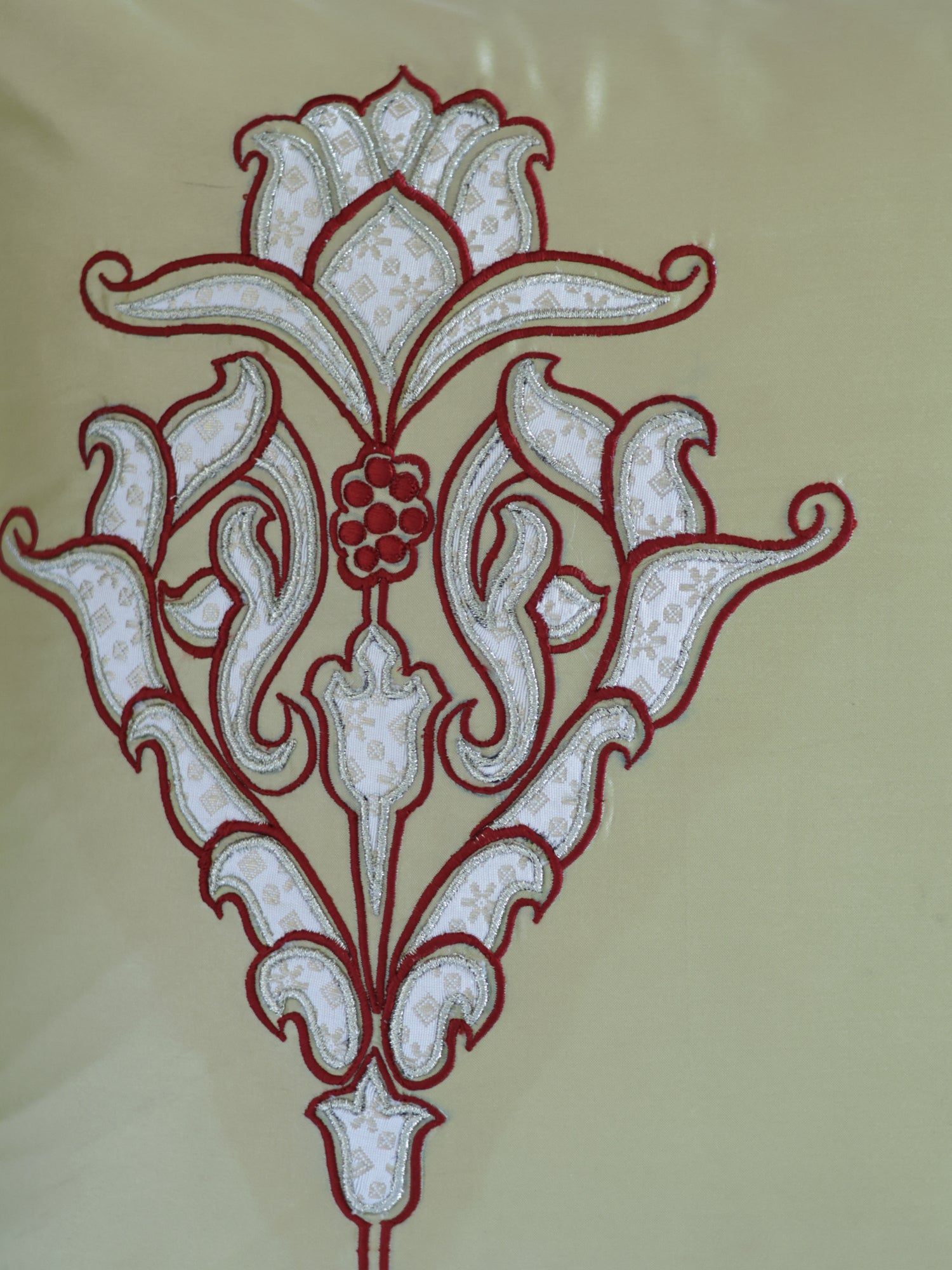 Elevate your home this festive season with Zeba's elegant cream embroidered cushion cover, a part of our festive collection crafted to blend style and comfort. The standout appliqué pattern, combined with fine machine embroidery, adds a charming elegance to your living space. Cord piping around the edges gives a neat, tailored finish and enhances the overall look of the cushion cover.