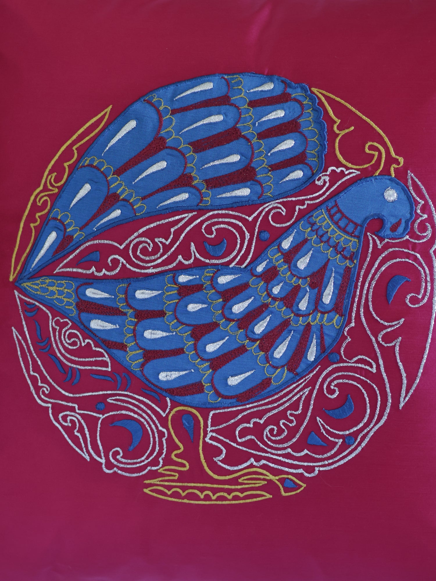 Elevate your space this festive season with Zeba pink cushion cover featuring an appliqué and embroidery design. The intricate detailing at the center of the cushion cover adds texture, while the cord piping provides a neat and structured finish that enhances the overall look of the cushion cover.