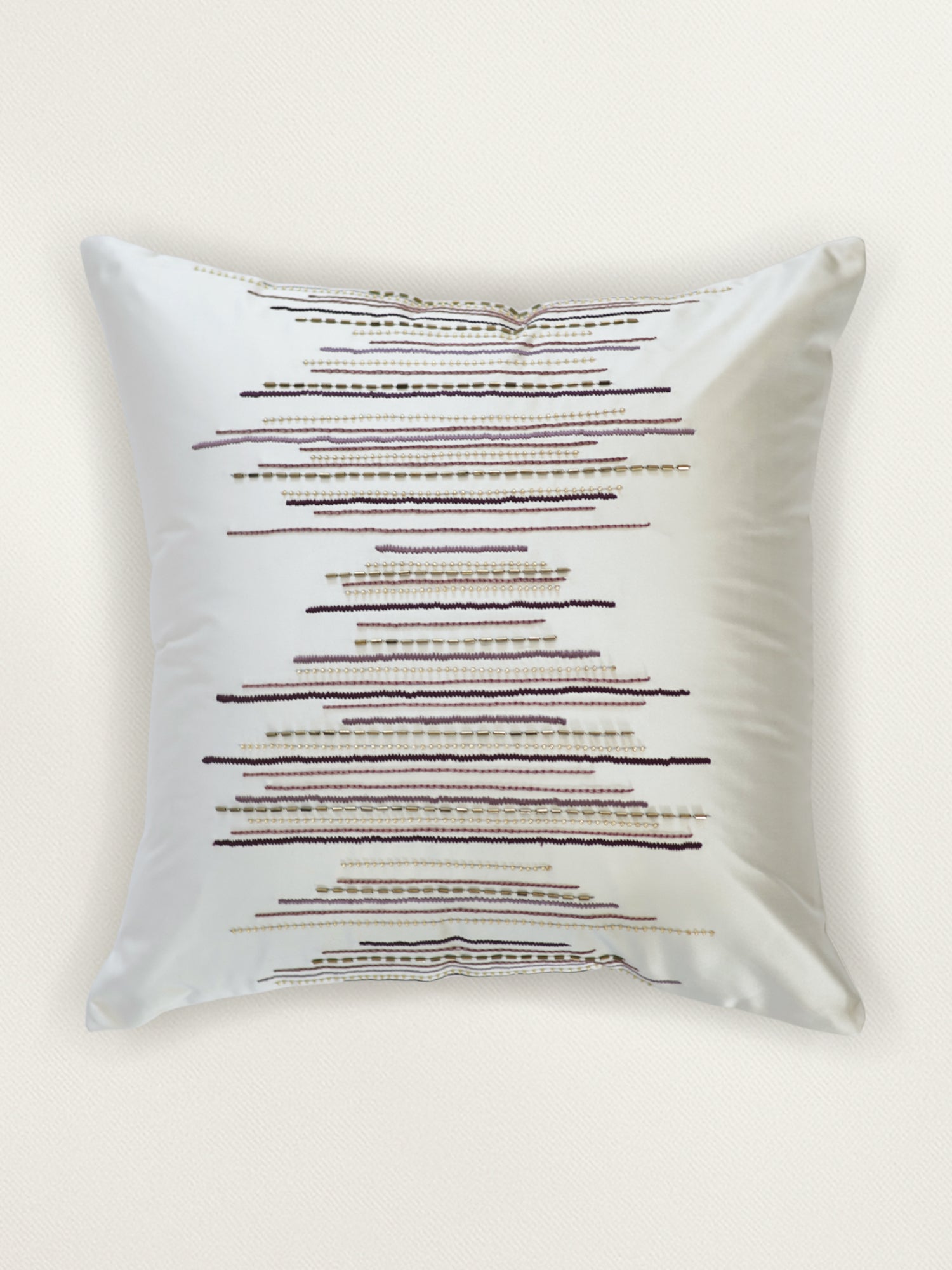 Polycotton Embroidered Cushion Cover 16 Inch x 16 Inch | Cream & Purple