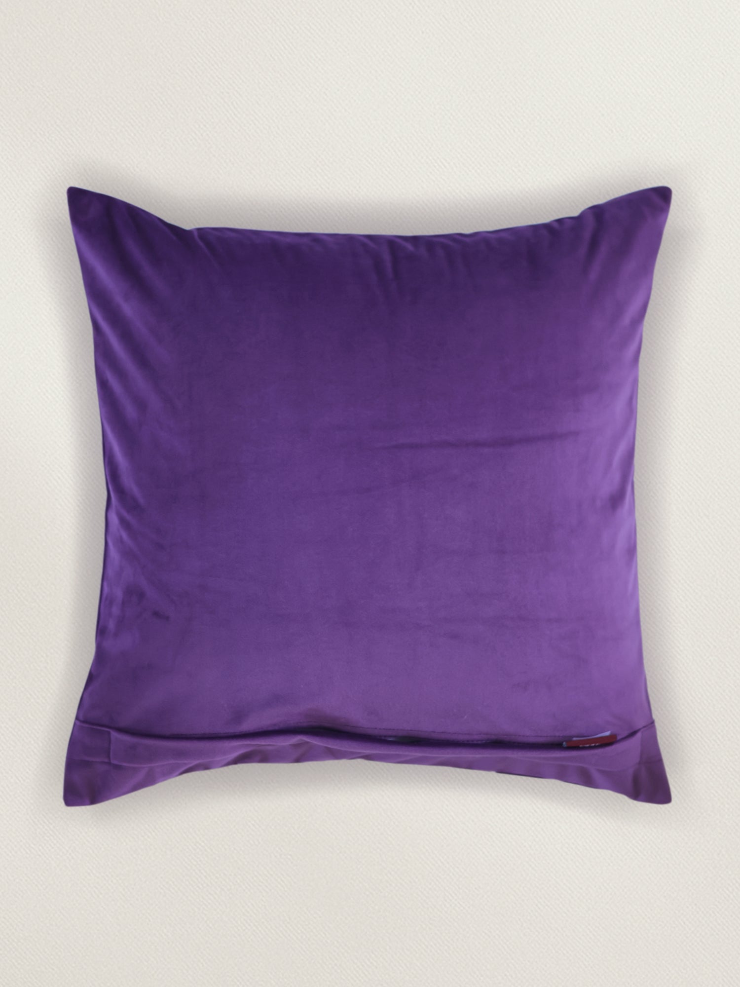 Design your space with our rich velvet embroidered cushion cover in regal purple that will uplift your living space with its luxurious feel and festive elegance. The design features delicate machine embroidered work that creates a graceful pattern on the soft velvet base. The combination of deep purple with the shimmering embroidered work makes it an perfect décor piece for your festive setups. The size of cushion cover is 16x16inch, crafted from premium velvet fabric that provides soft and smooth texture that feels luxurious.
