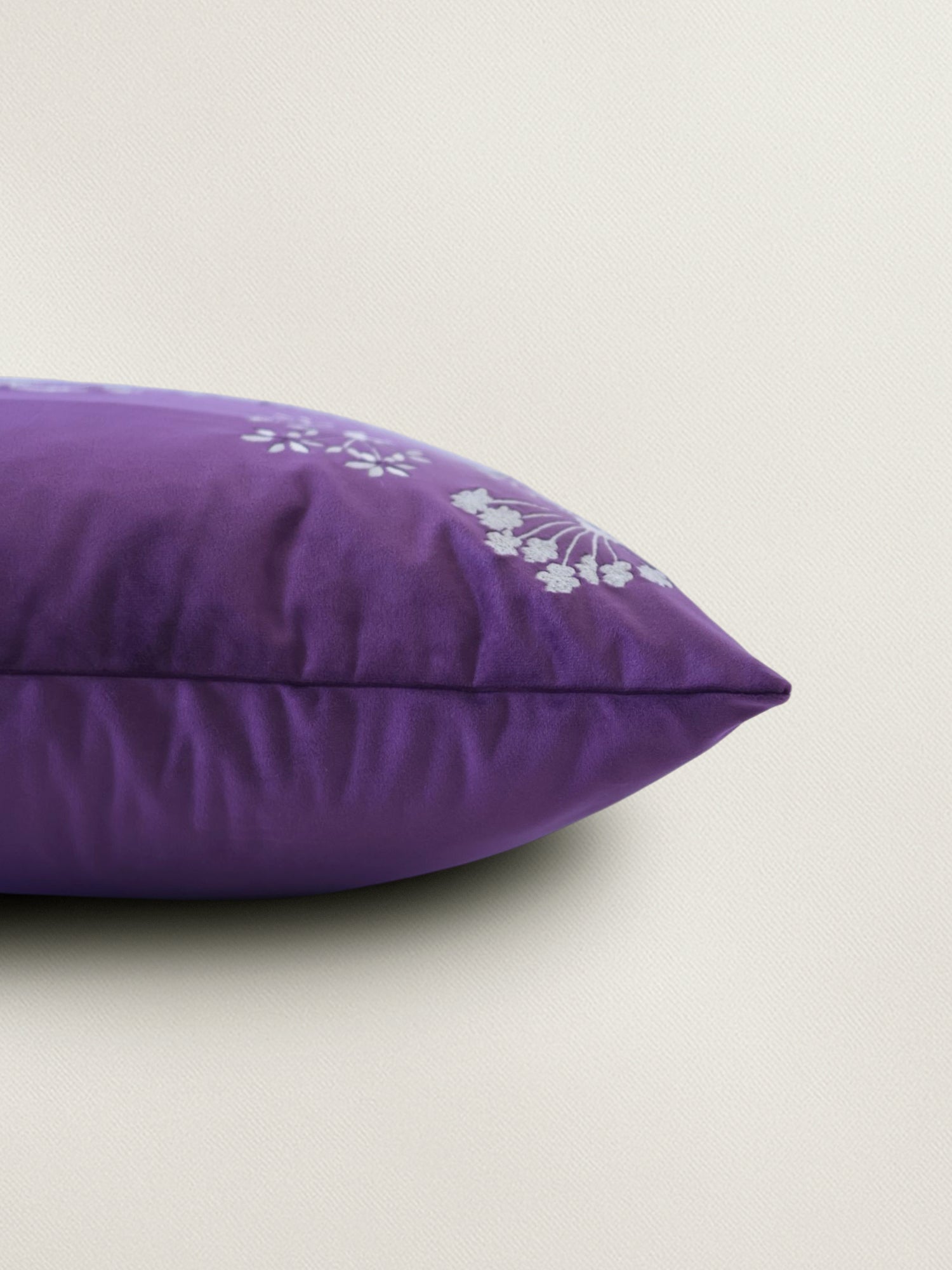 Embroidered Velvet Cushion Cover 16x16inch, Purple