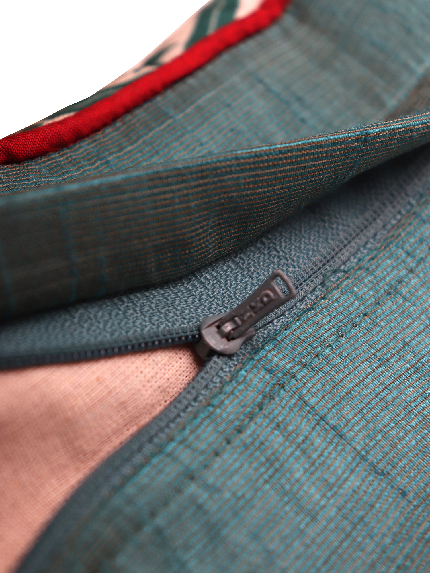 This green 16x16 inch cushion cover can cheer you up by giving you comfort while taking care of the quality. Crafted from the best quality cotton polyester blend fabric, it features a beautiful Digital Print with Cord Piping and Antique Golden Zari pattern that adds an ornamental value to your home decor.