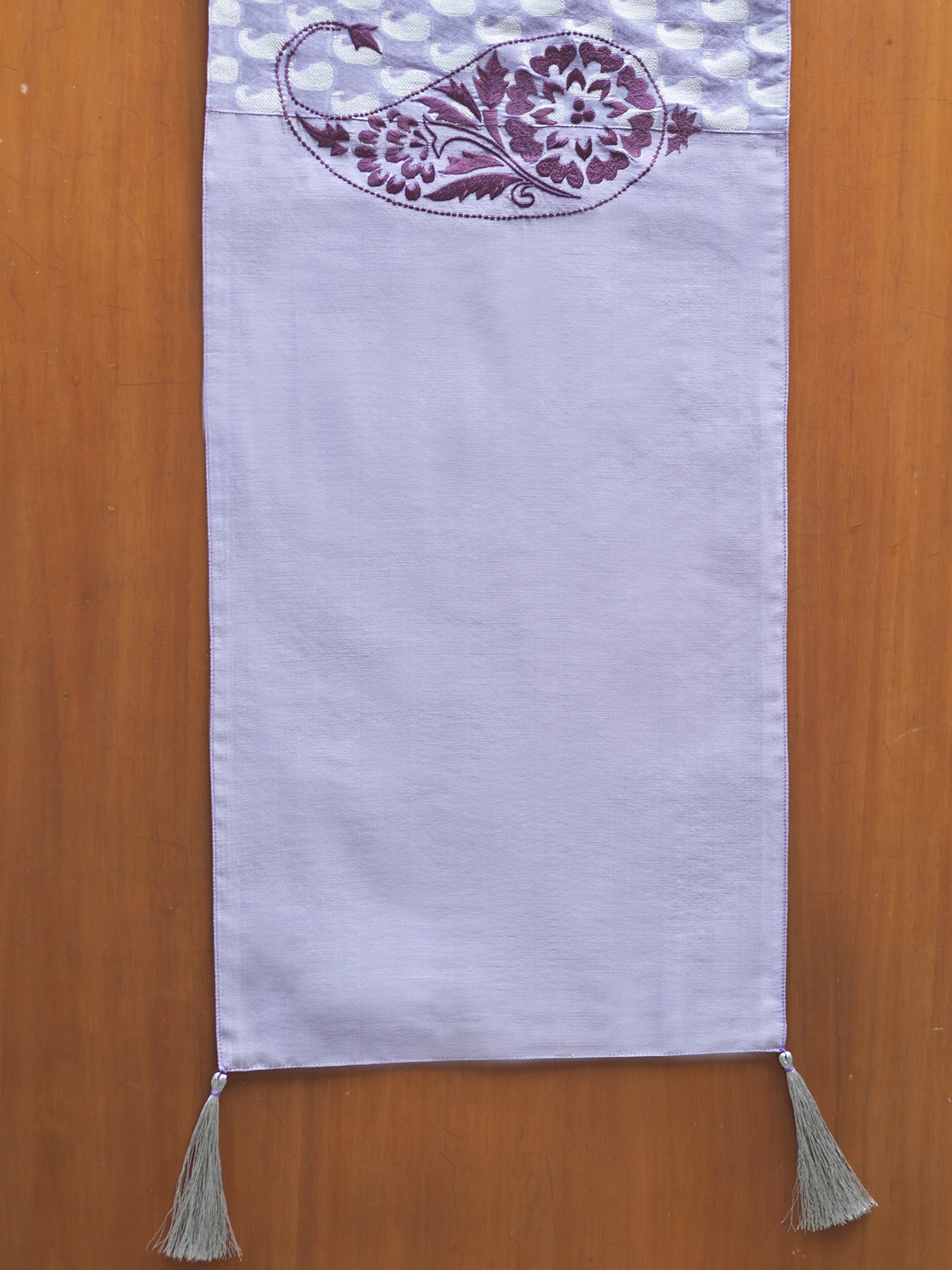 Paisley Embroidered Purple Table Runner With Tassels, Brocade, 12x84inch