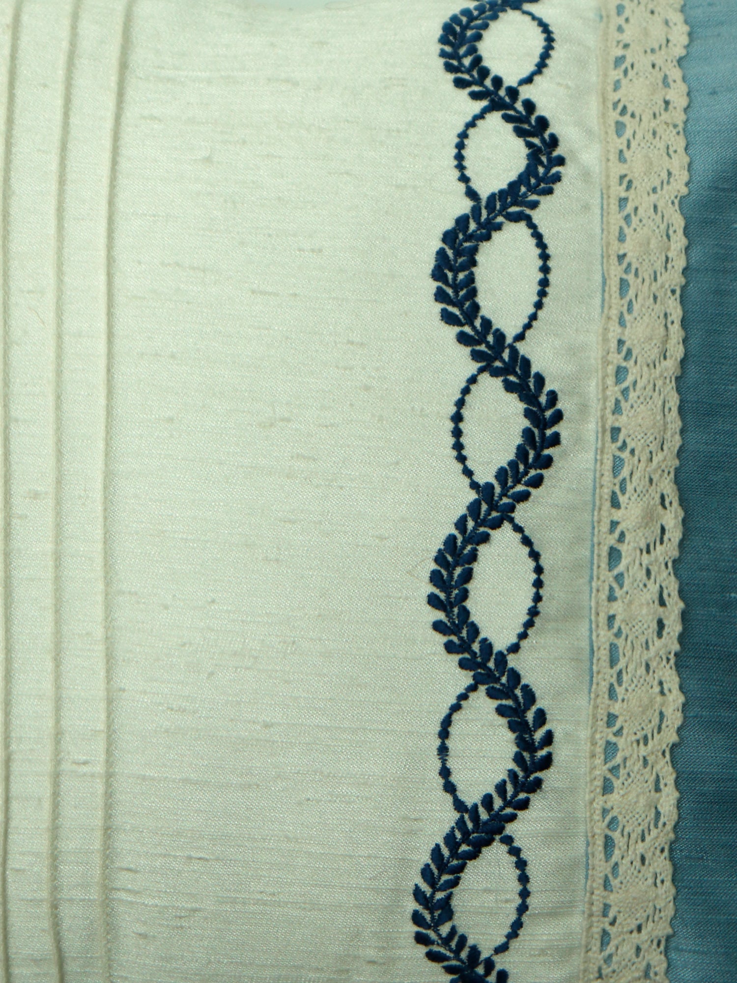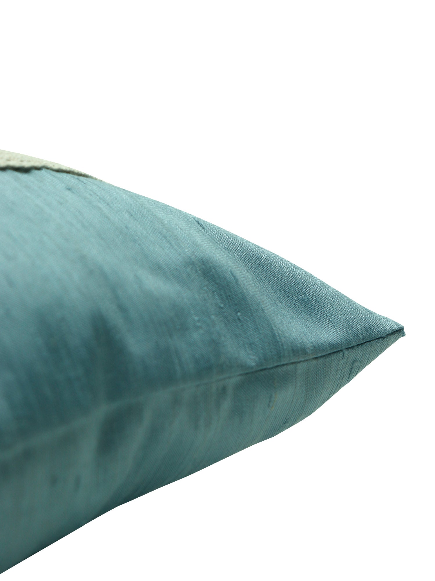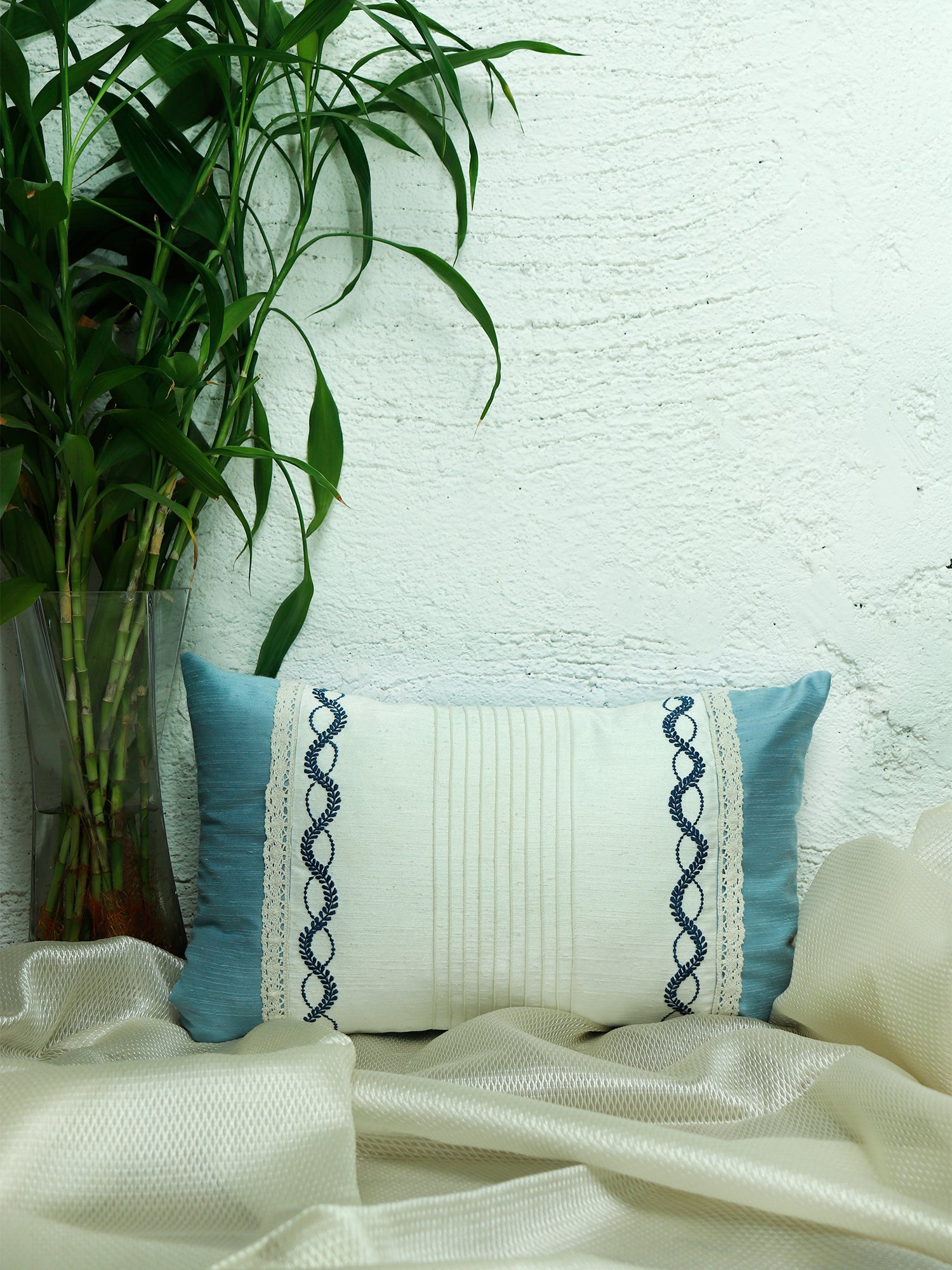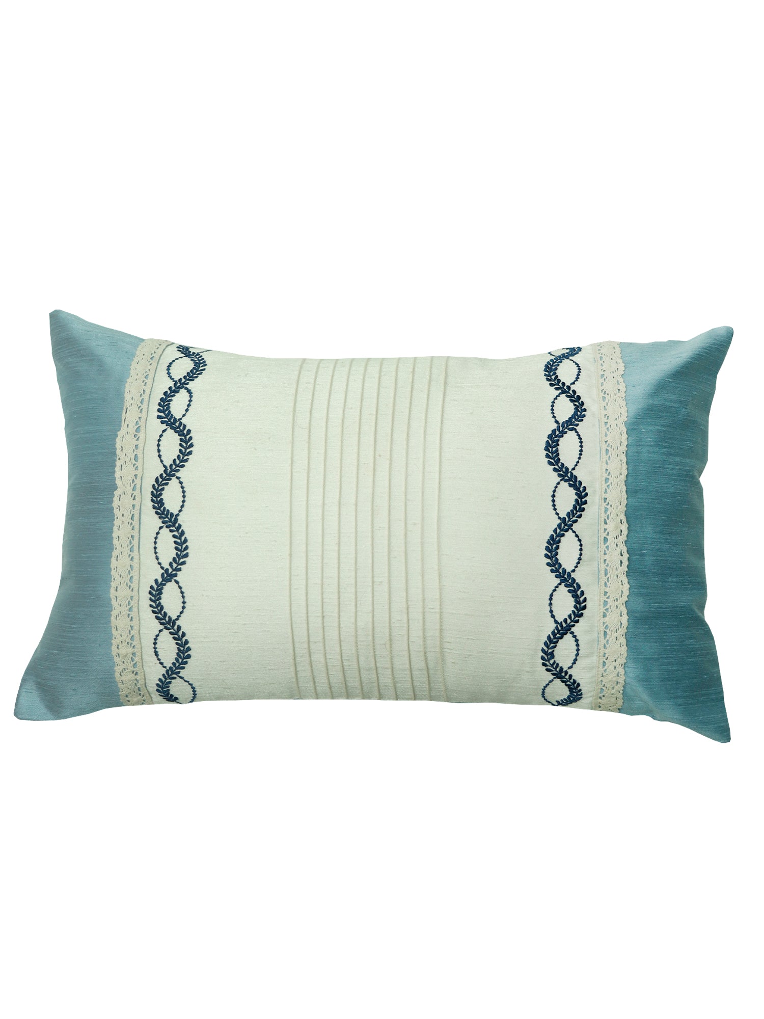 Technique Cushion Cover Polyester Patchwork with Pintuck and Embroidery Aqua Beige - 12" X 20"