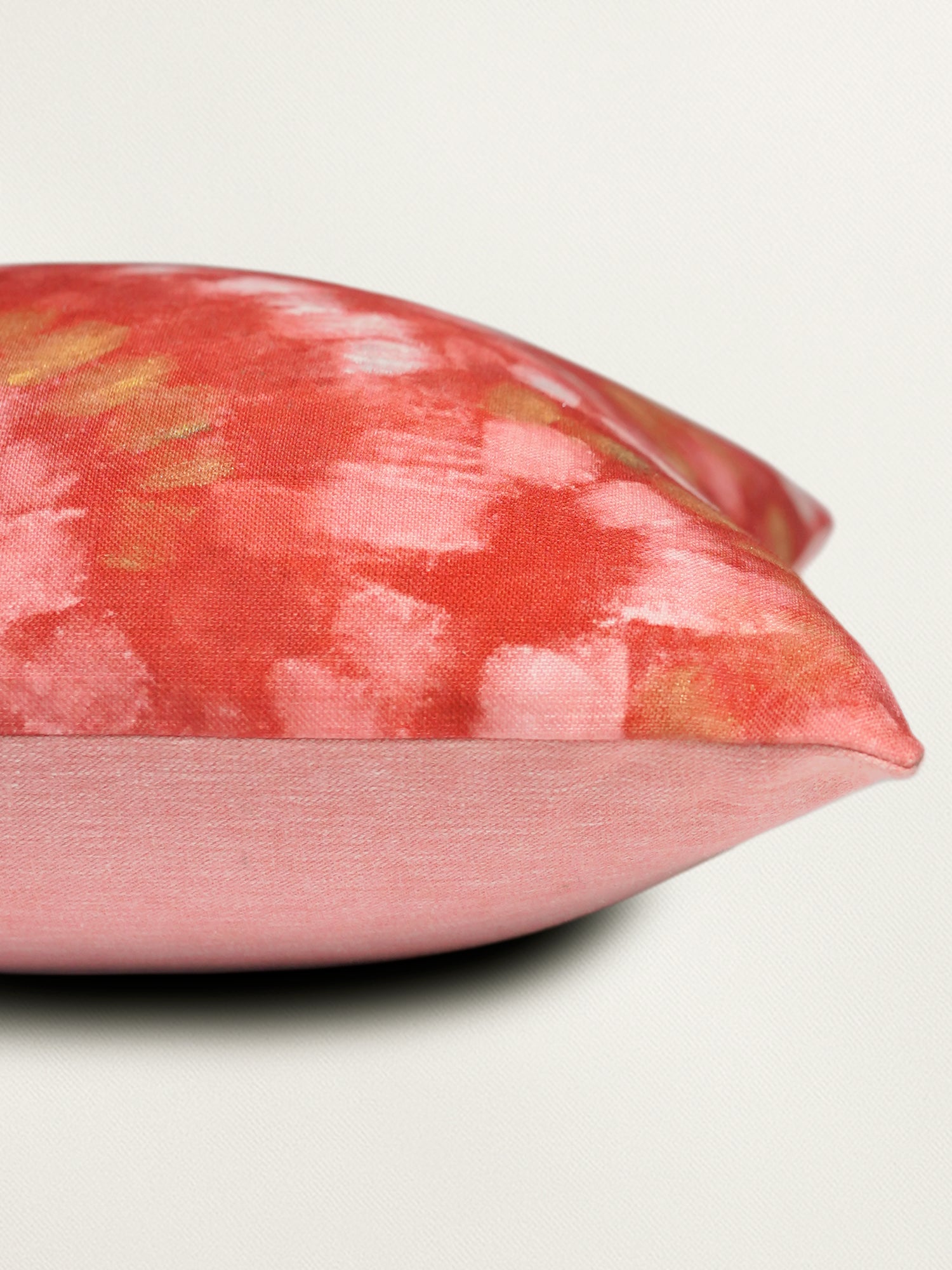 Poly Cotton Pink Cushion Cover -Digital Print |Hand-Painted Gold Strokes – 16x16 Inches (Set of )
