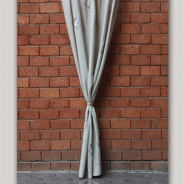 Door Curtain 100% Linen Aari Embroidered Floral Sheer Beige - 52" X 90"