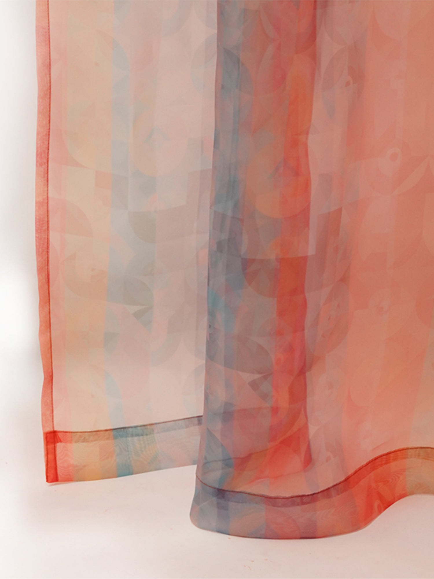 Bring some vibrancy and modernity to your home interior with this multi color curtain. The rich geometric pattern in abstract shades of blue, green and orange is stylish and displays a glam look. The sheer fabric is light weight adding a luxurious look to your space.