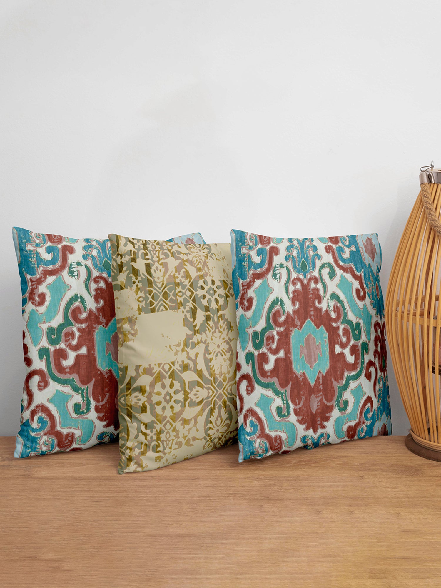 Cushion Covers Set Of 3 Polycanvas Printed Watercolor Ikat Multi- 16" X 16"